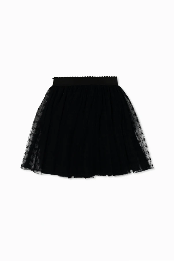 Der Tüllrock mit Monogramm ist Ausdruck unvergleichlicher Eleganz und meisterhafter Handwerkskunst der italienischen Marke Dolce & Gabbana Kids . Der spektakuläre, ausgestellte Schnitt schwebt leicht über dem Knie und bezaubert durch seine subtile Form und luftige Ausstrahlung. Die obere Schicht aus schwarzem, zartem Tüll wurde mit einem regelmäßig gestickten Monogramm veredelt, das sich zu stilvollen Rauten anordnet – dieses kunstvolle Detail unterstreicht dezent die Einzigartigkeit des Designs.