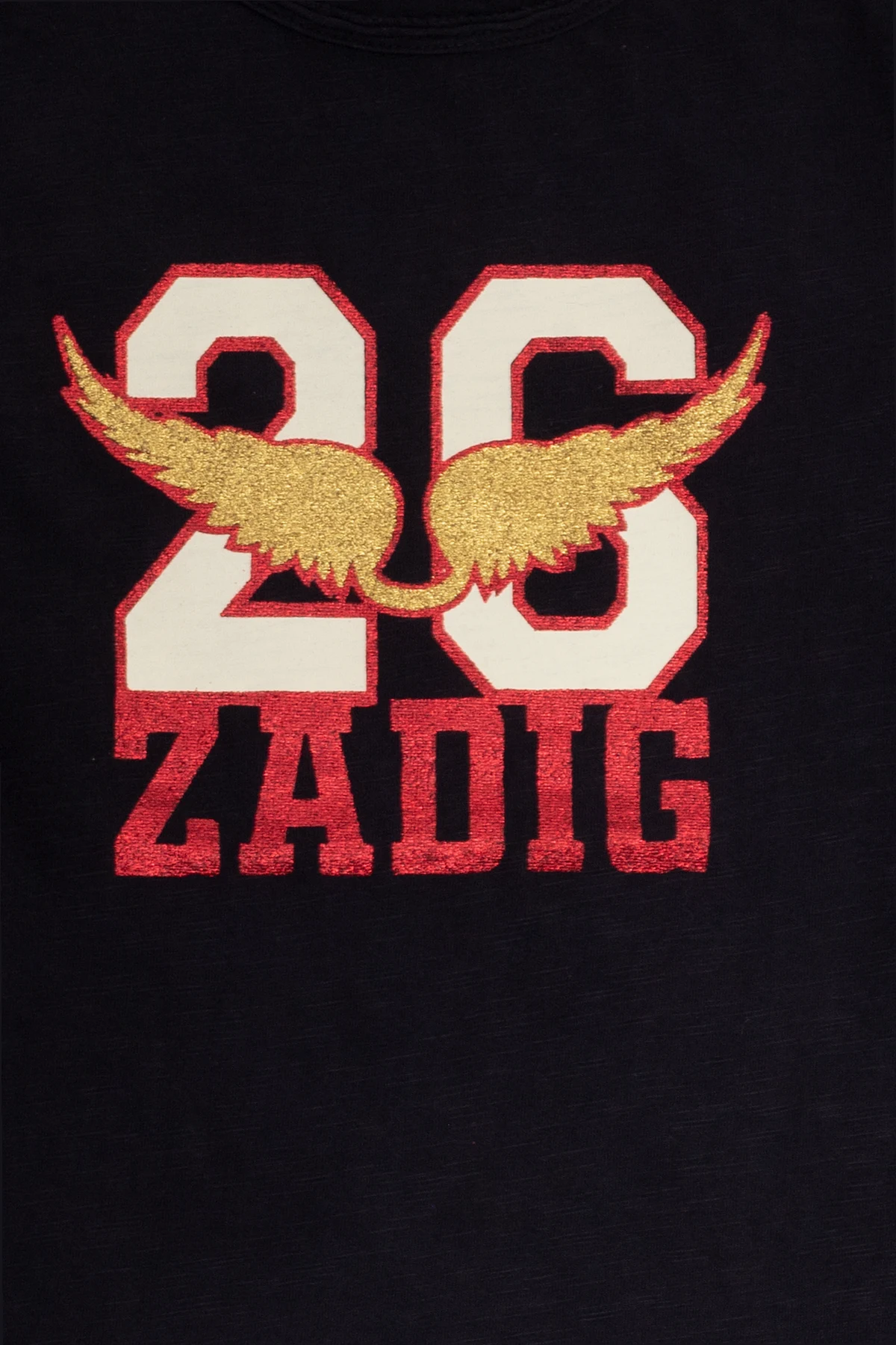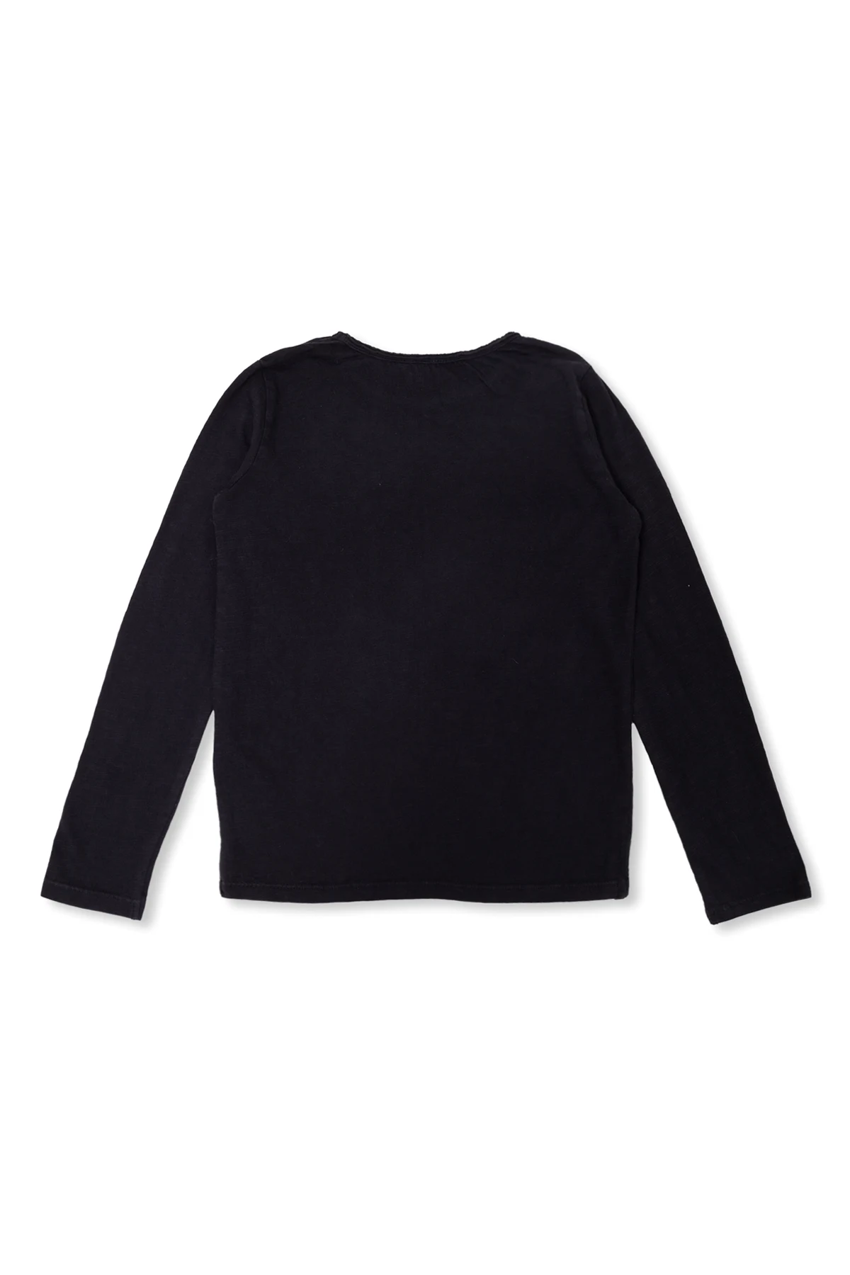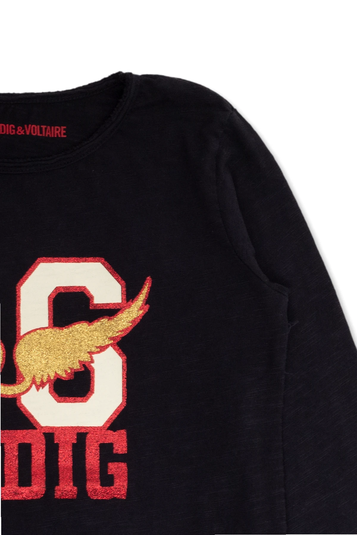 Black top from Zadig & Voltaire Kids. Crafted from cotton, this design features a multicolored logo print, round neck, long sleeves and raw trims.