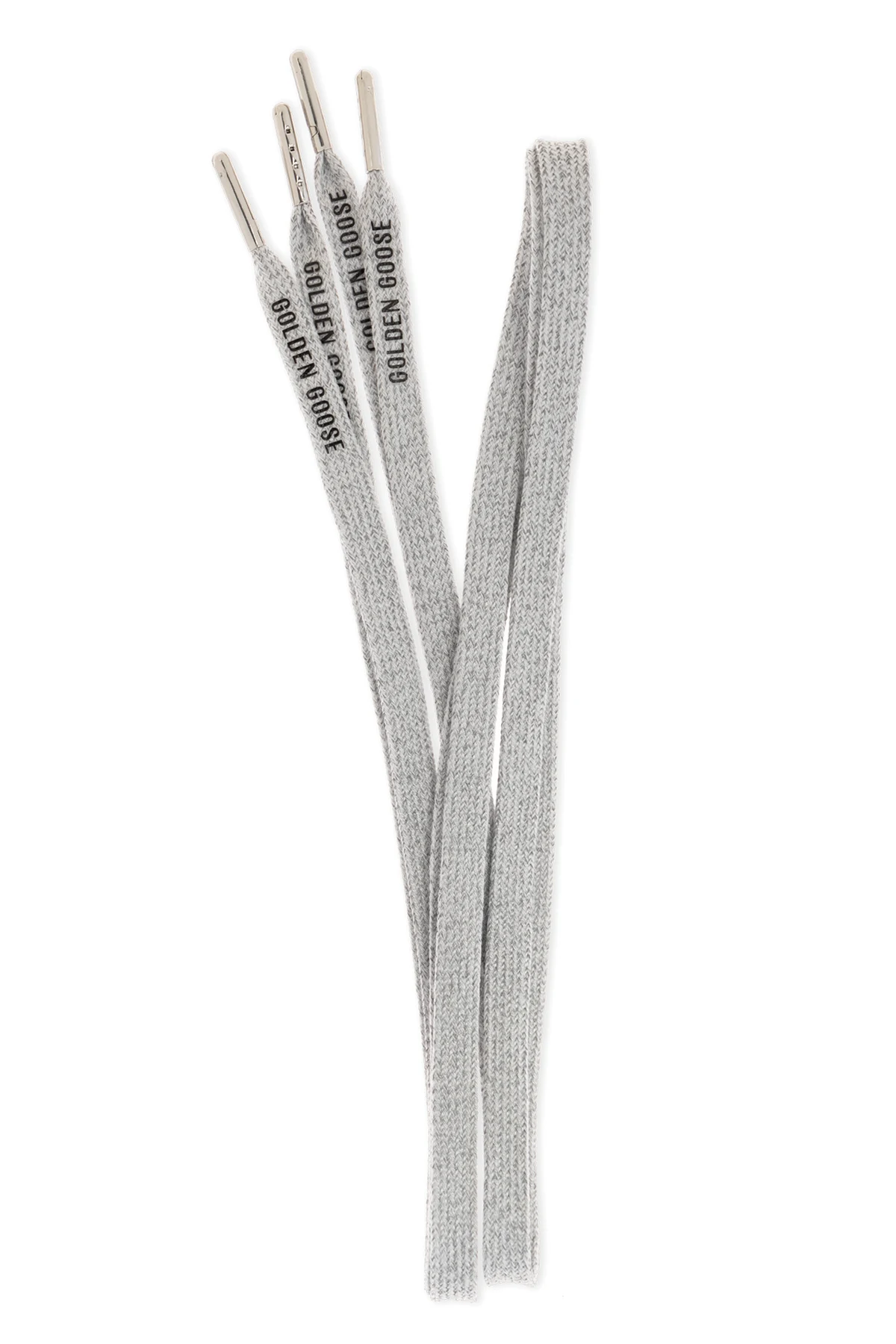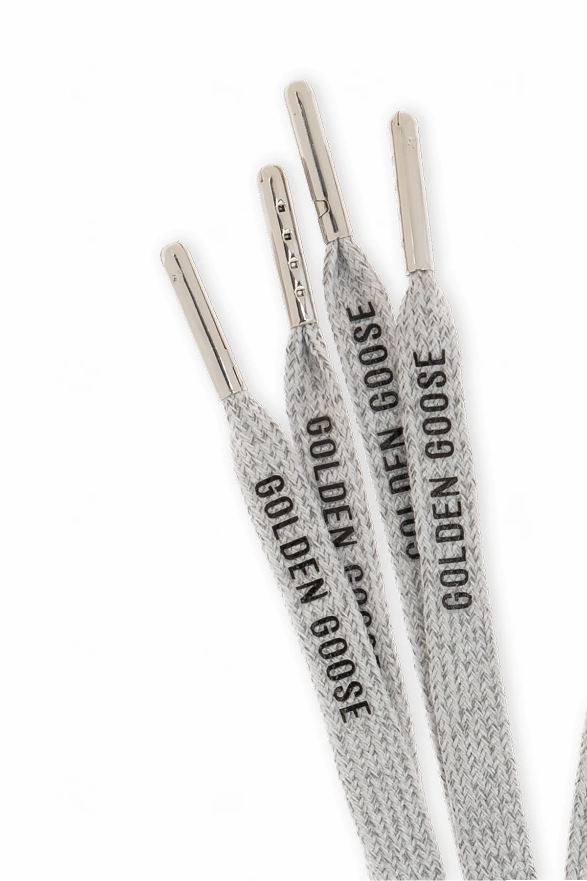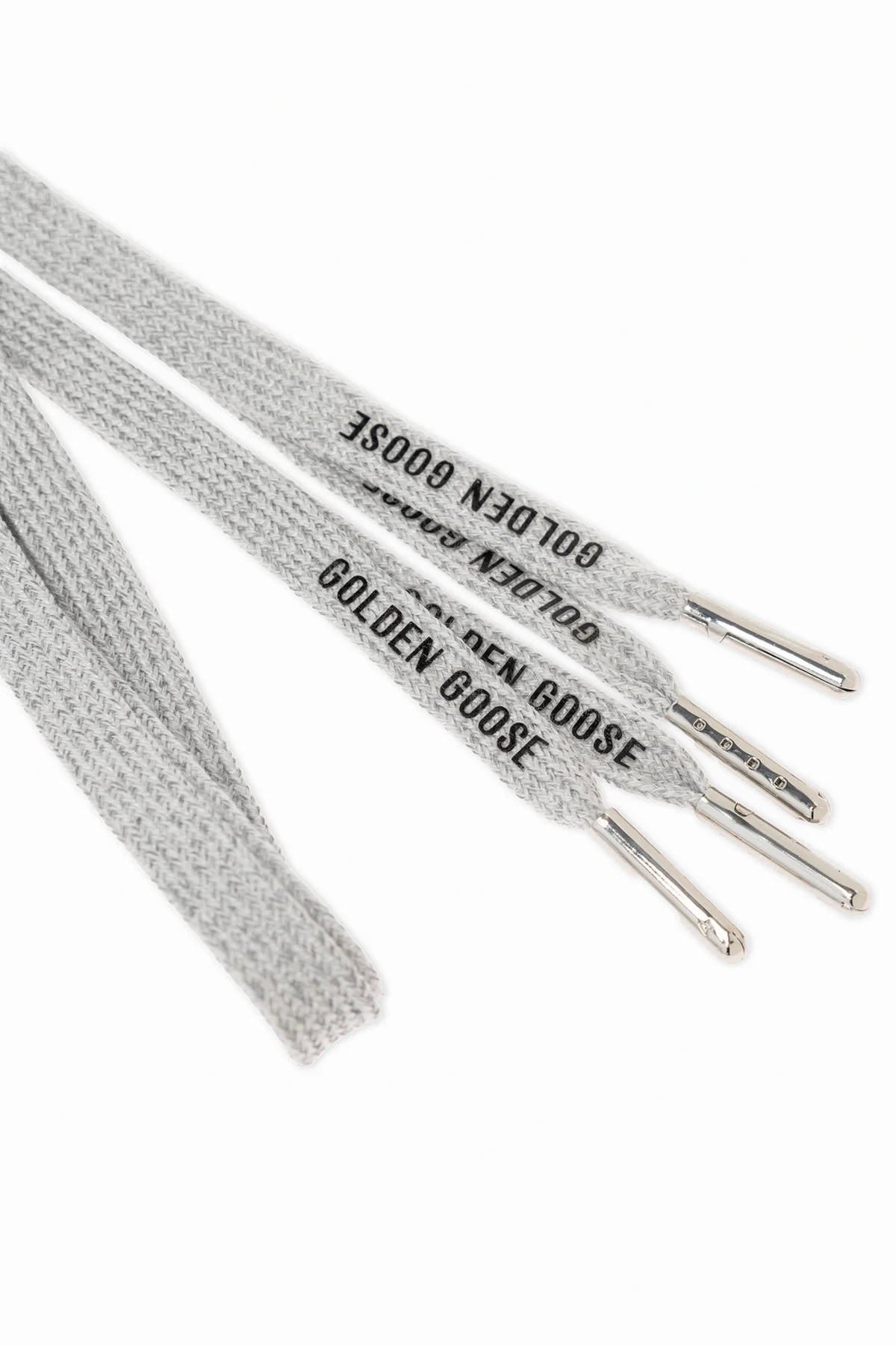 Wir präsentieren die Schnürsenkel mit Logo von Golden Goose – die Quintessenz von Luxus und raffiniertem Stil. Diese einzigartigen Schnürsenkel, hergestellt aus hochwertigem Material mit dichter Webart, sind in einer dominierenden silbernen Farbe erhältlich, die ihre Eleganz und zeitlose Ästhetik unterstreicht.