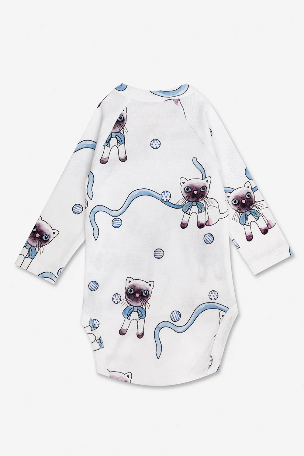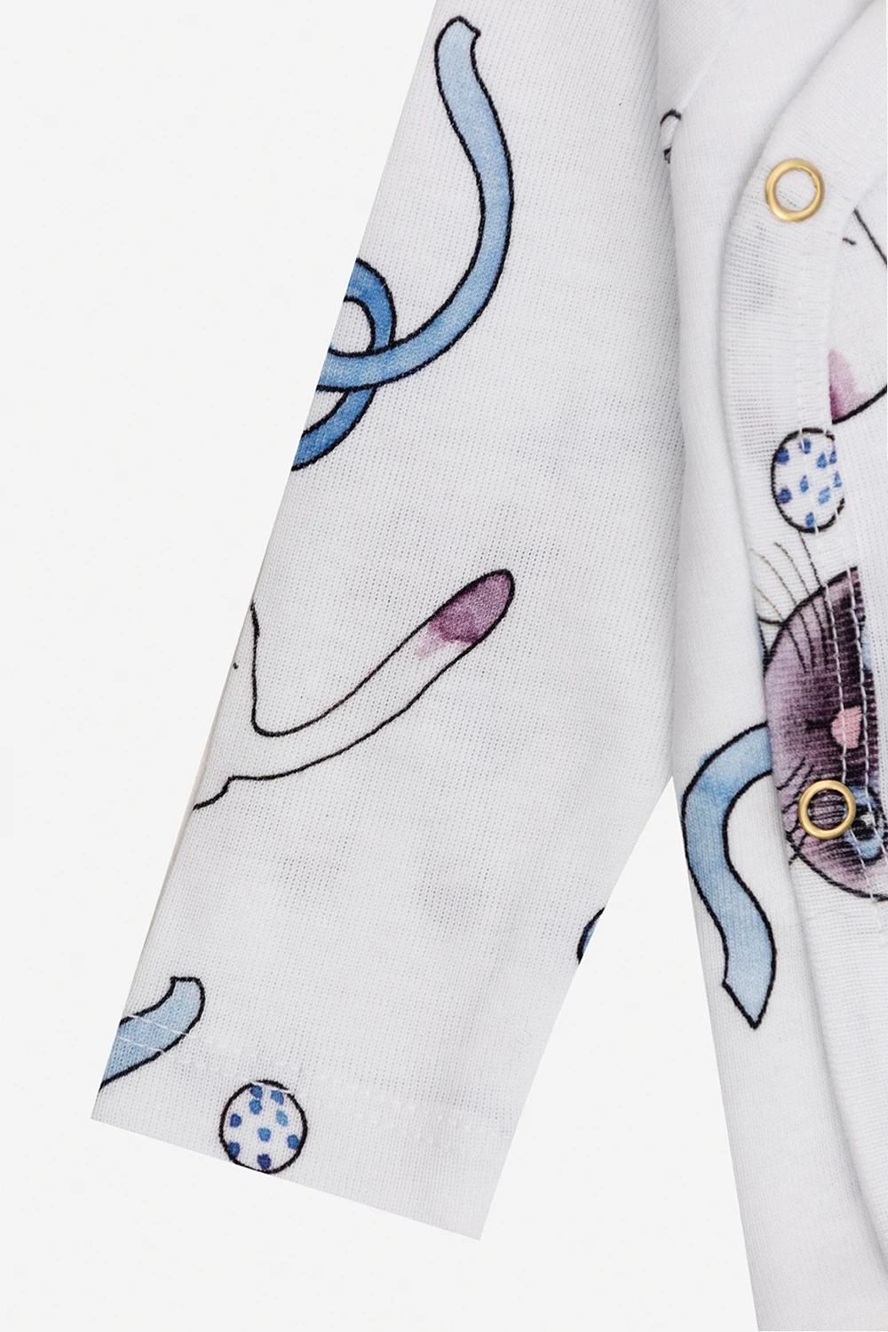 White body with long sleeves from Mini Rodini. Crafted from organic cotton with the GOTS certficate, this round neck design features snap fastenings and multicolored cat print.