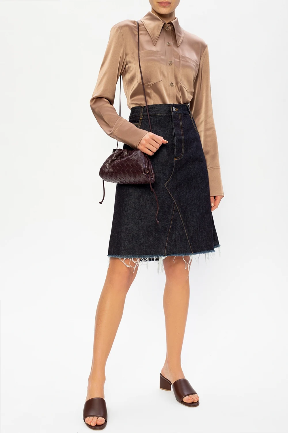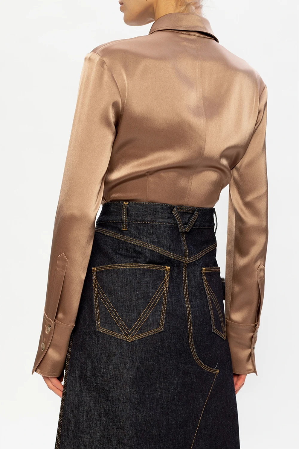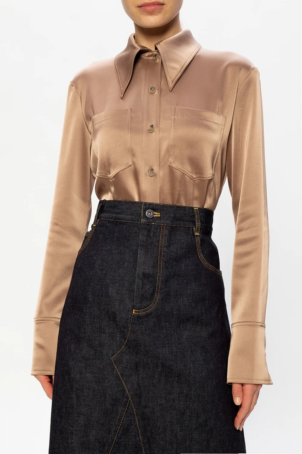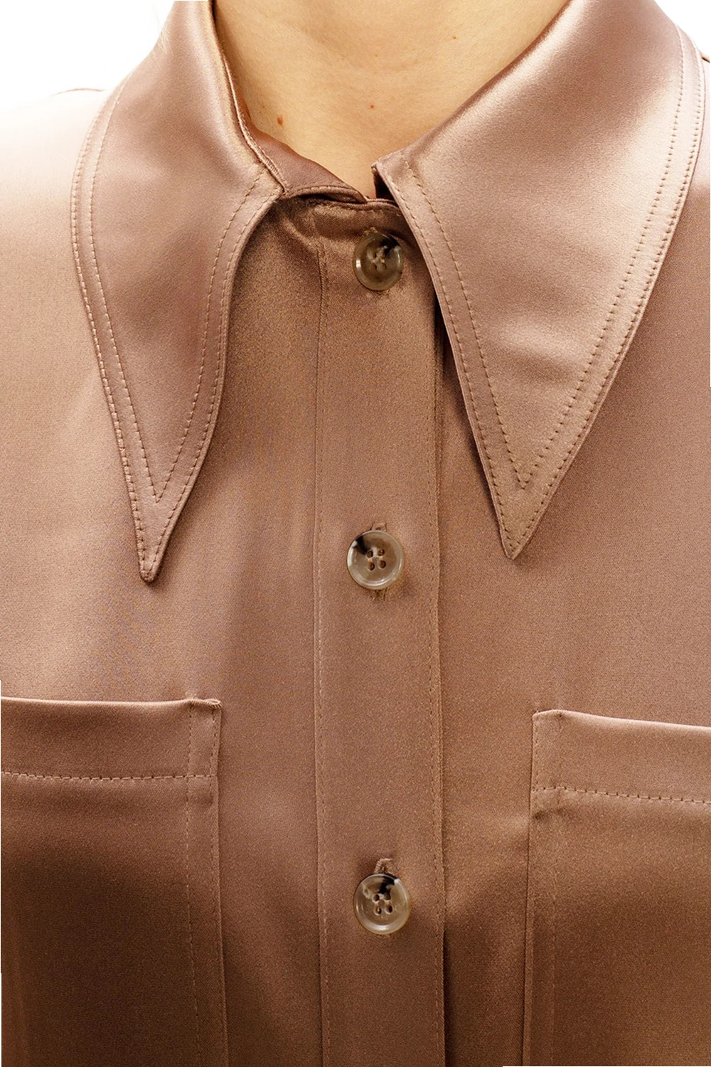 Brown shirt from Nanushka. Crafted from a luminous, satin-like fabric, this garment fastens via buttons and features long sleeves and two frontal pockets.