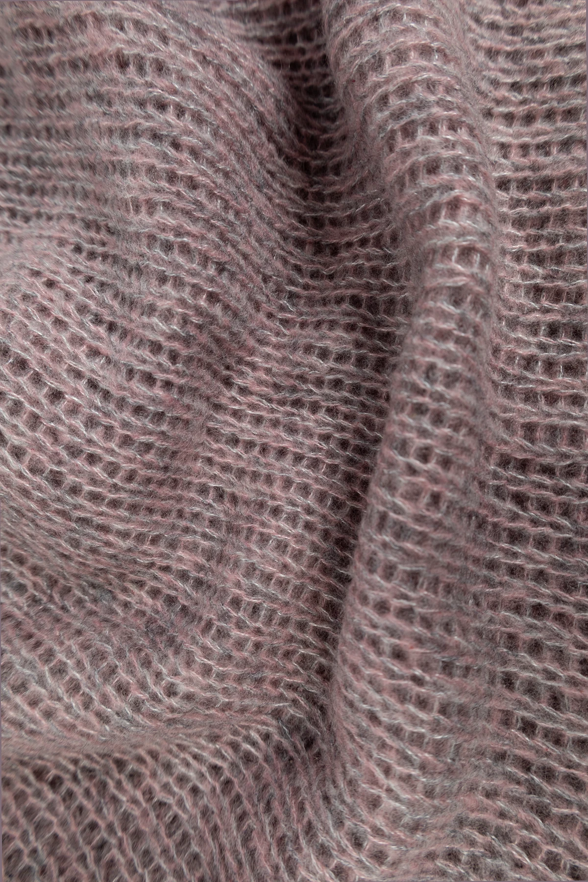 Der Schal Ulla ist eine harmonische Kombination aus edlem Grau und einem subtilen Rosaton, der ihm einen einzigartigen Charakter verleiht. Die Ajour-Struktur des Strickmusters und das einheitliche Design mit deutlicher Textur verleihen Tiefe und Leichtigkeit.