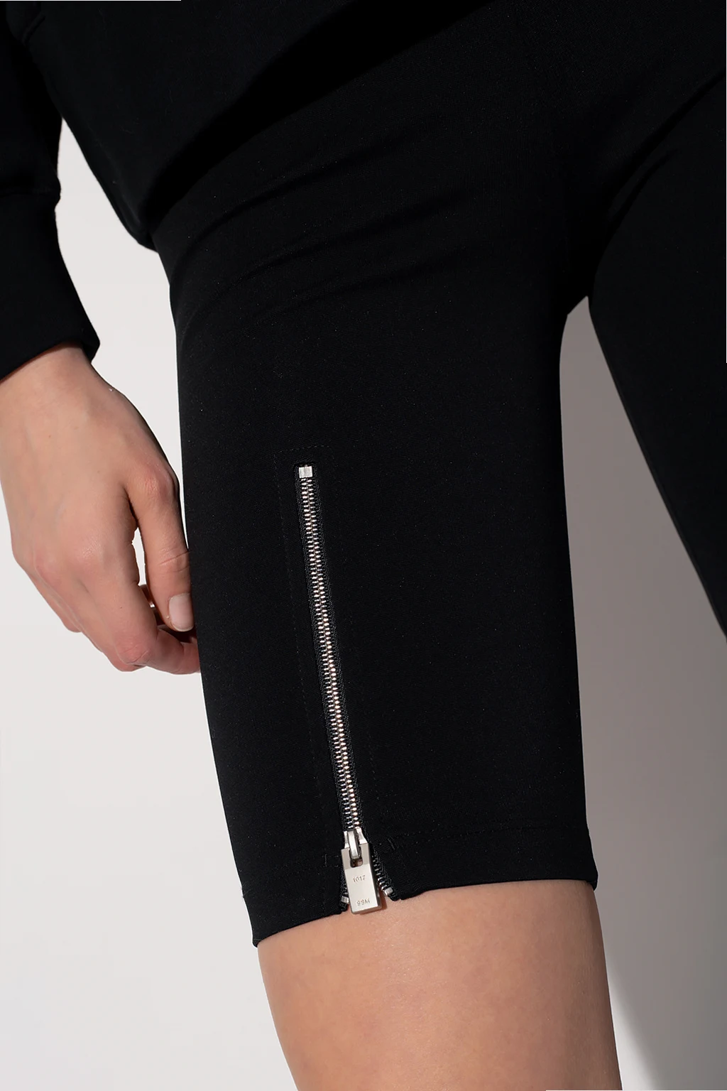 Black leggings from 1017 ALYX 9SM. Cut with a cropped silhouette, they feature an elasticated waistband and silver-tone metal hardware.