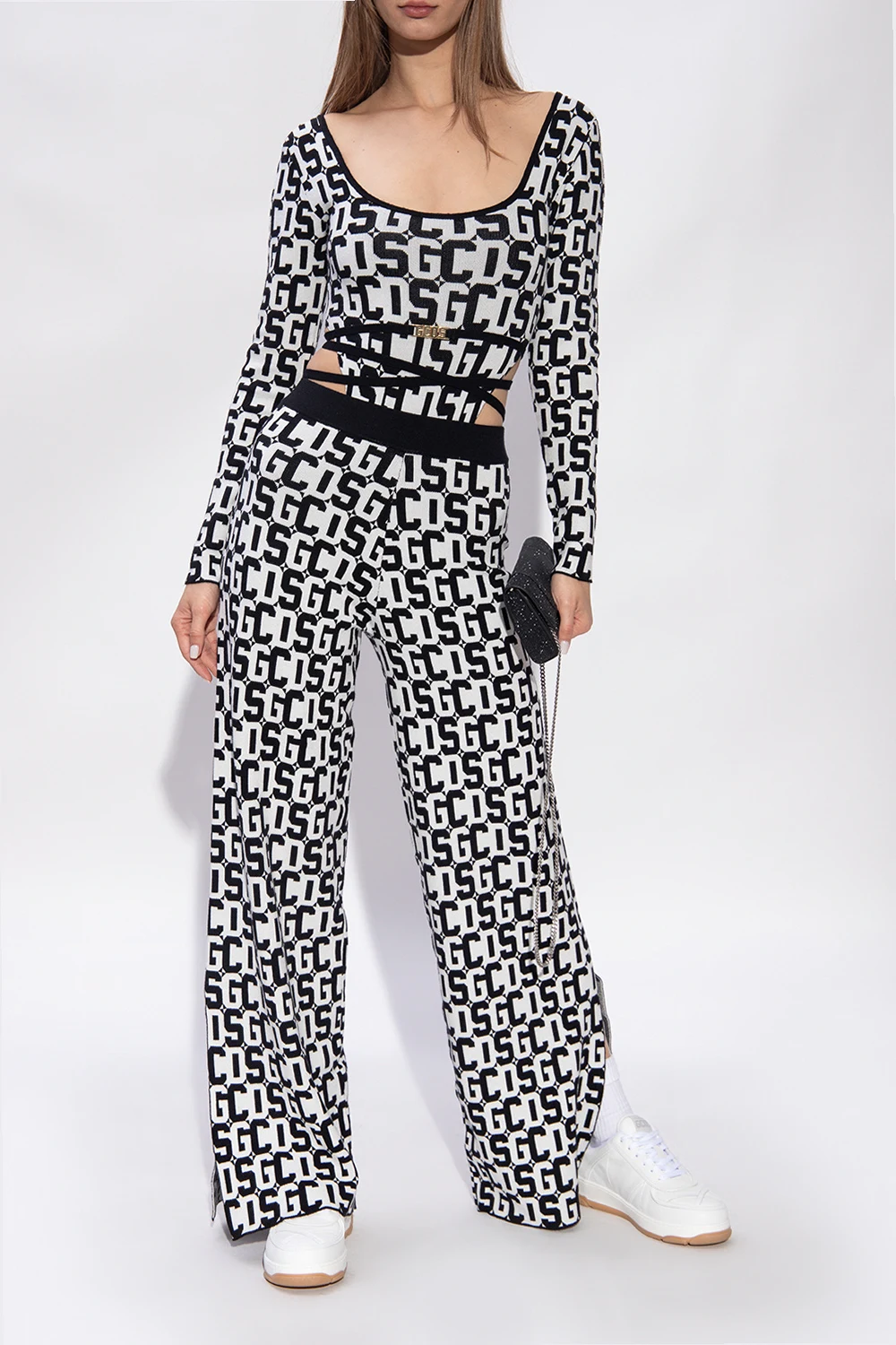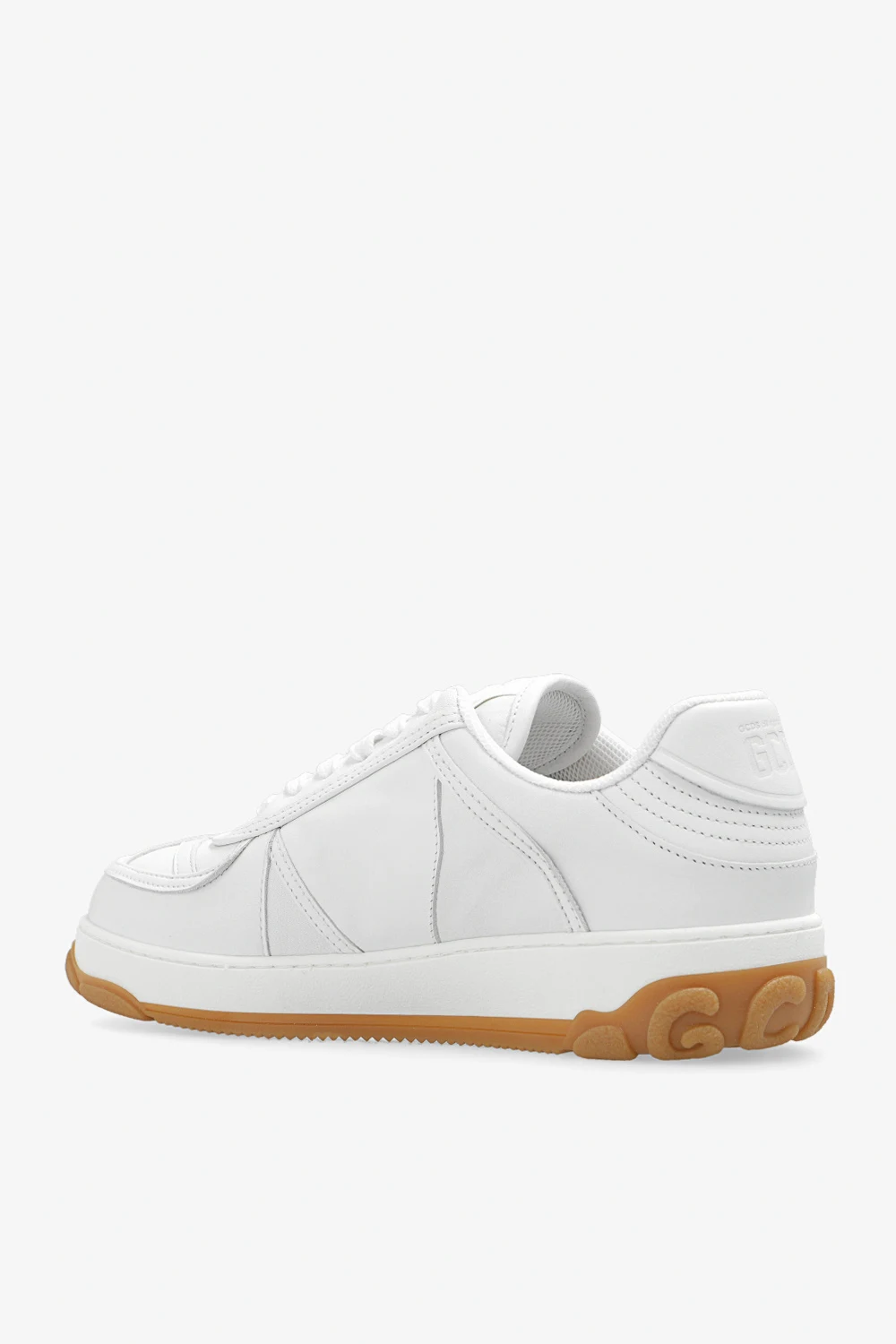 White sneakers from GCDS. Made of leather, this lace-up pair features a logo detail and rubber sole in light brown and white.