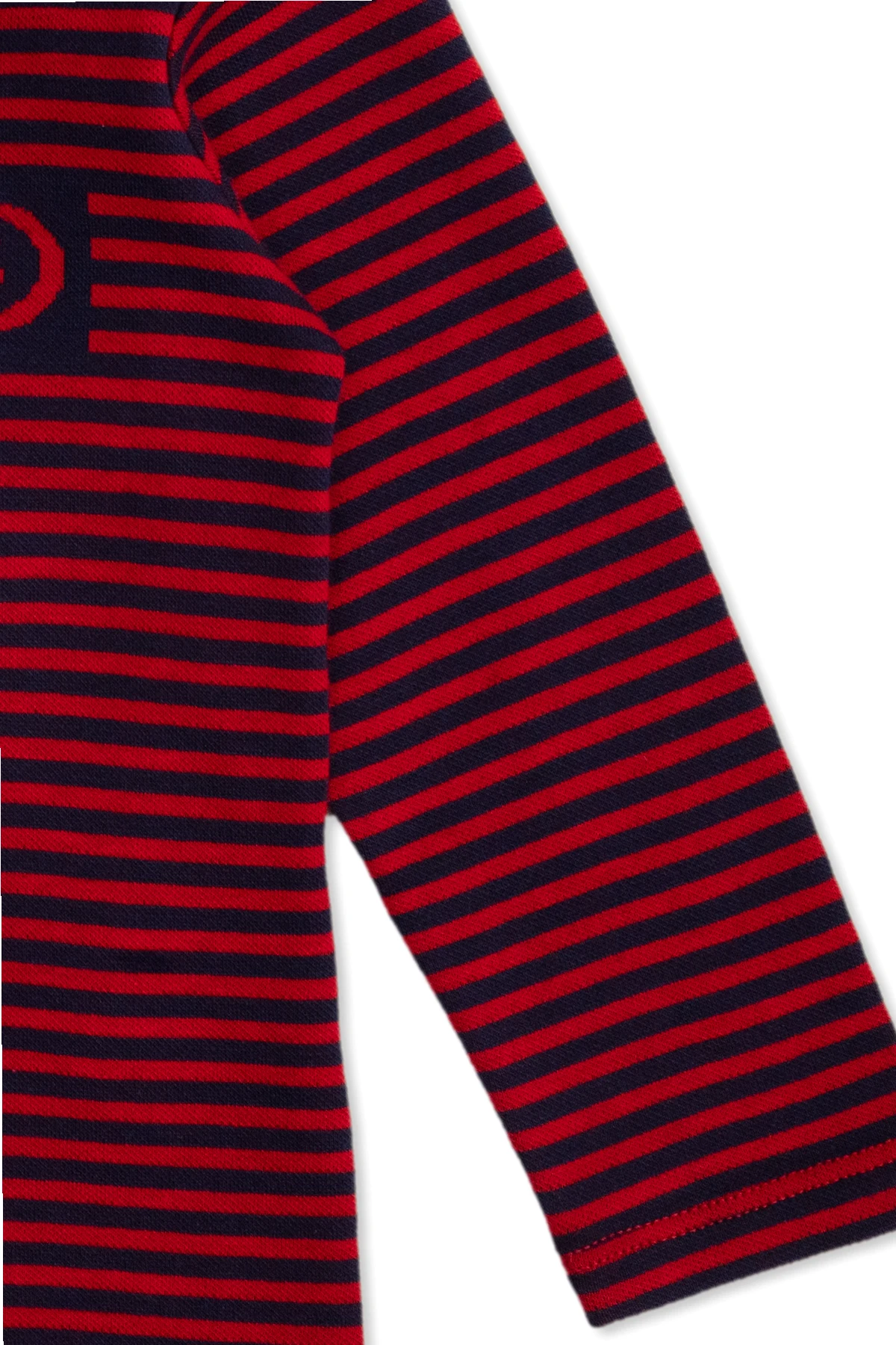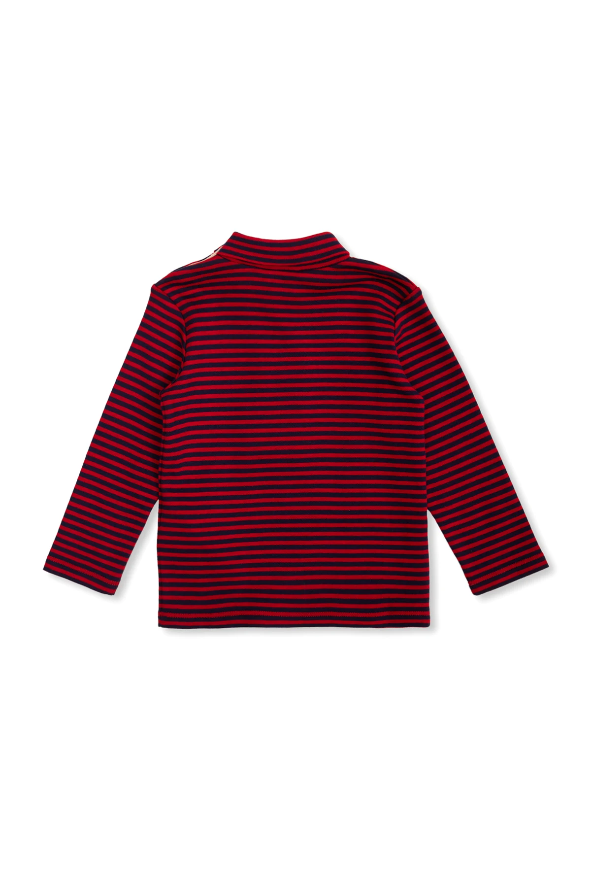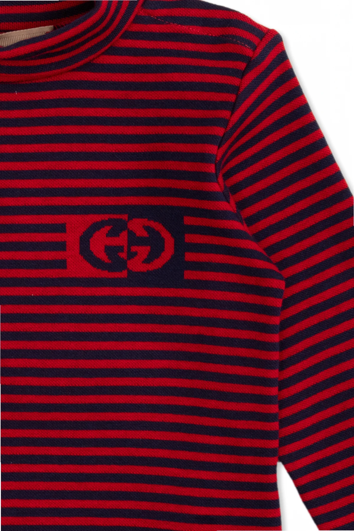 Navy and red turtleneck sweater from Gucci Kids. Made of cotton, this long sleeve design features a stripe pattern and logo.