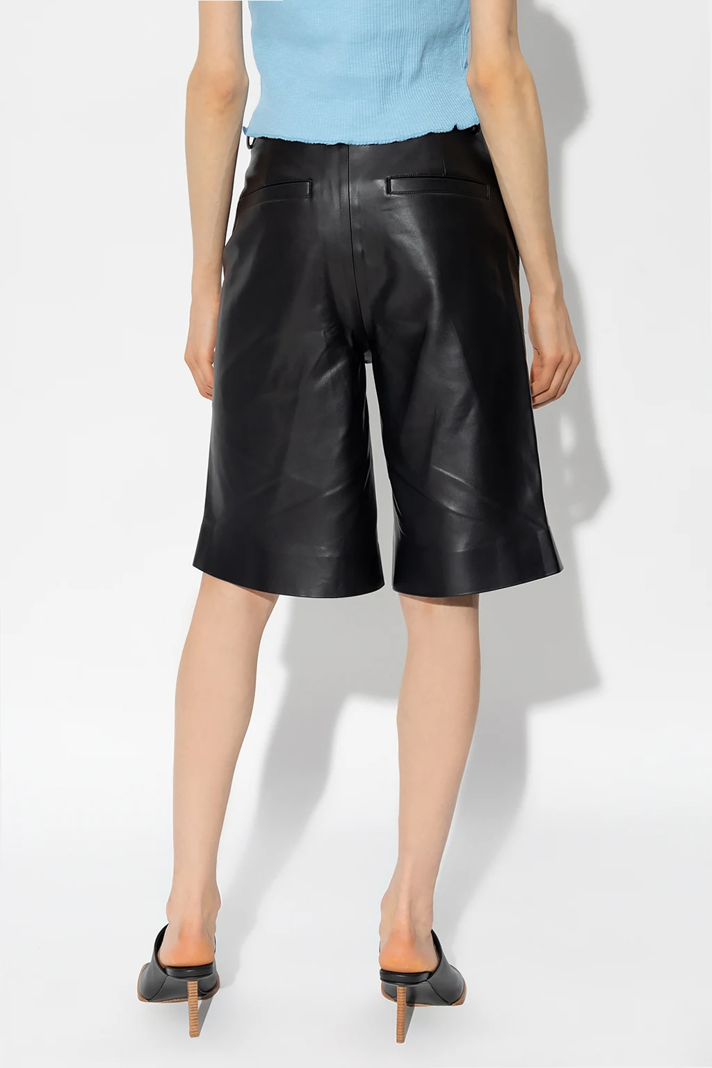 Black ‘Celest’ shorts from Holzweiler. Made of faux leather, this high-waisted pair features a button and zip fastening as well as four slip pockets.