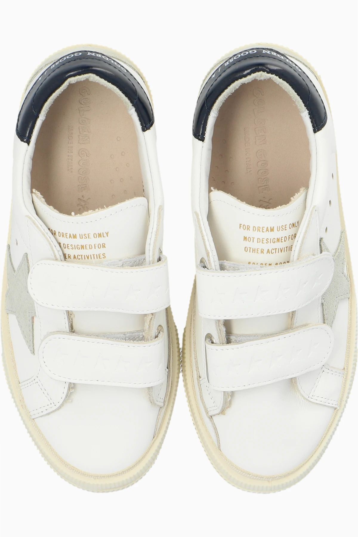 Wir präsentieren Ihnen die exklusiven Sportschuhe ‘May School’ von Golden Goose Kids , die Eleganz und Funktionalität vereinen, speziell für unsere jüngsten Kunden entworfen. Mit ihrem niedrigen Profil, typisch für Sneaker, sind sie mit Blick auf die Freiheit und den Komfort der Kinder gestaltet.