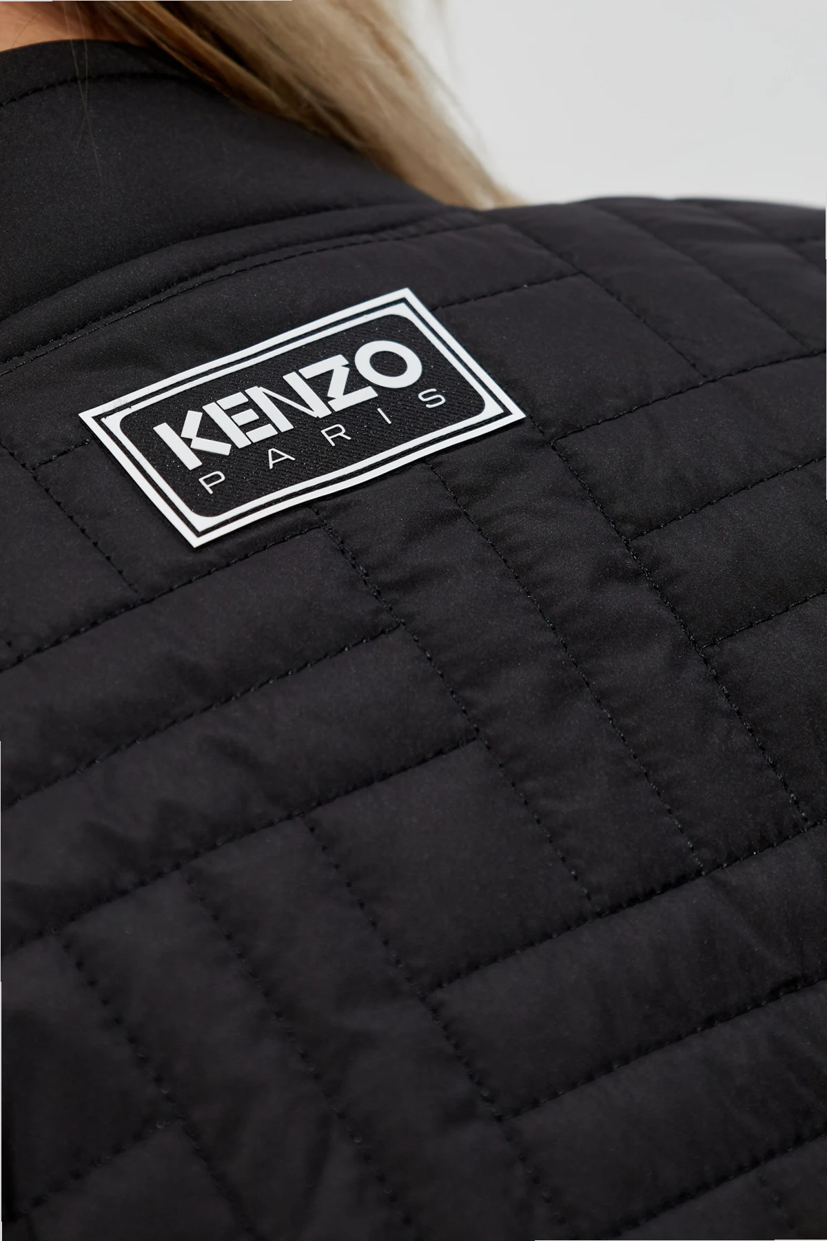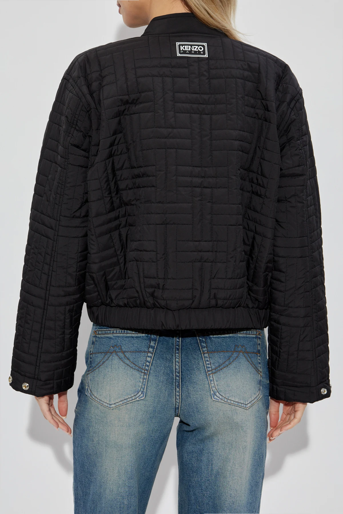Die Jacke ist vorne mit einem Reißverschluss und Druckknöpfen versehen, und zwei Reißverschlusstaschen bieten praktische Funktionalität. Auf der Rückseite, im oberen Bereich, ist das sichtbare Logo "KENZO PARIS" platziert, das den einzigartigen Charakter des Produkts unterstreicht.