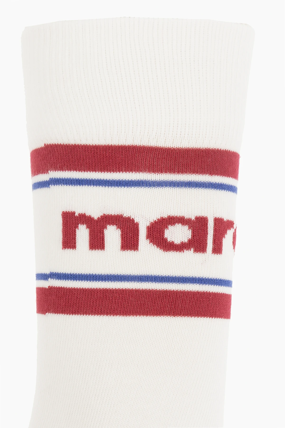 White, maroon and blue ‘Donel’ socks from Isabel Marant. Made of cotton, this pair showcases the brand's logo and ribbed cuffs.