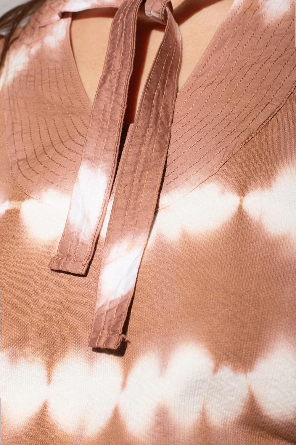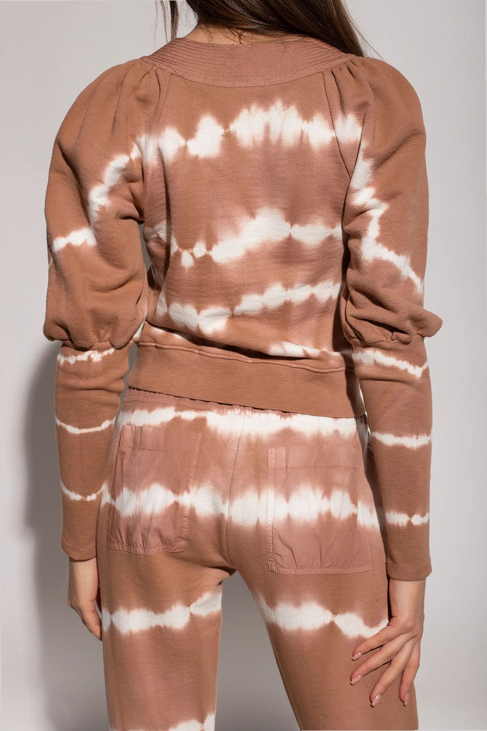 Brown and white sweatshirt from Ulla Johnson. Crafted from cotton, this garment features a tie-dye effect, decorative tie neck and long puff sleeves with ribbed cuffs.