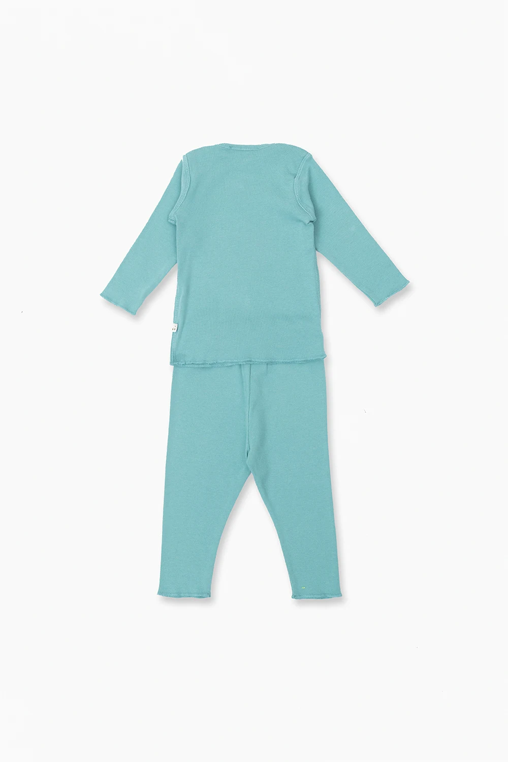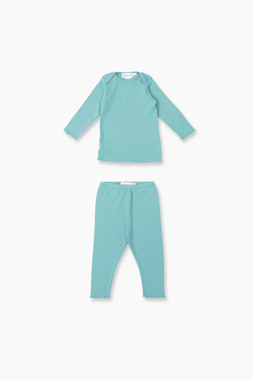 Greenish blue apparel set from Bonpoint. Made of cotton, it includes trousers and a blouse.