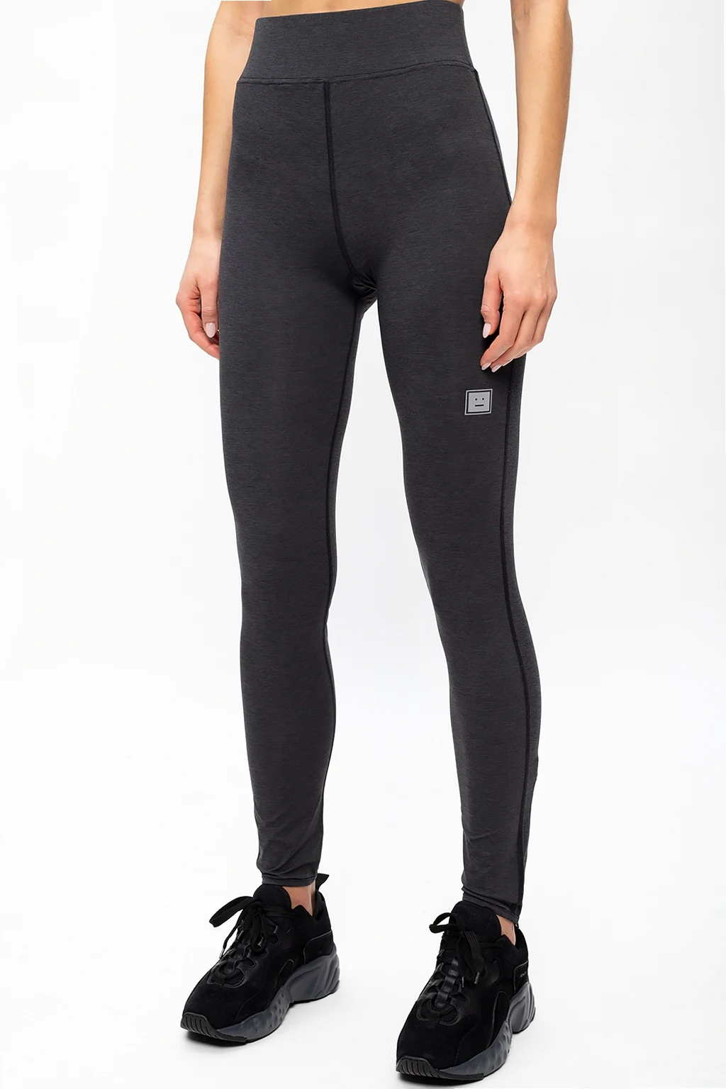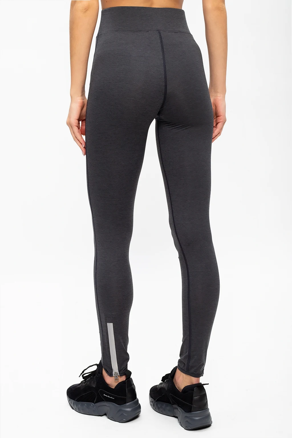 Grey leggings from Acne Studios. Crafted from a lightweight fabric, this pair has an elasticated waistband with a silver-tone branding and zip vents at the outseams.