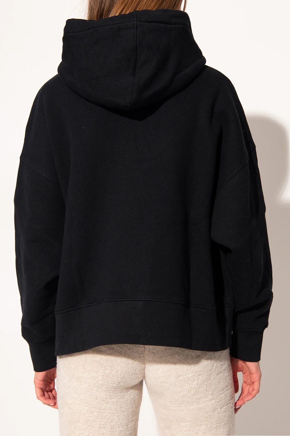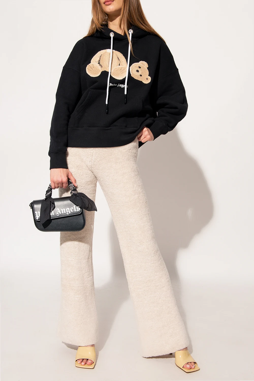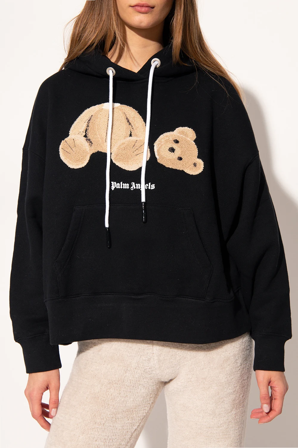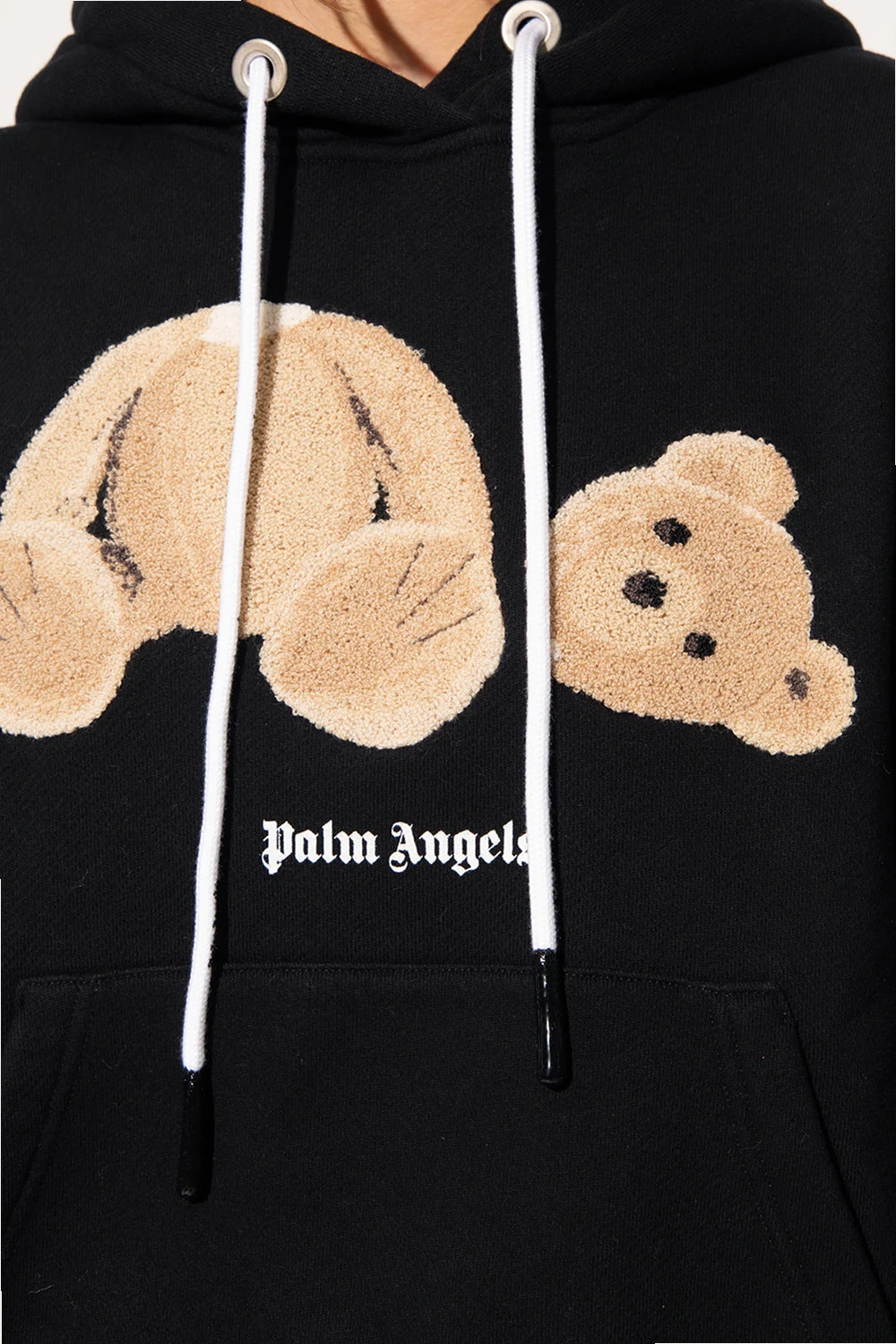 Black sweatshirt with a drawcord-adjustable hood from Palm Angels. Crafted from cotton, this hoodie showcases a logo detail, a decorative graphic pattern, a kangaroo pocket and elasticized trims on the bottom hem and cuffs.