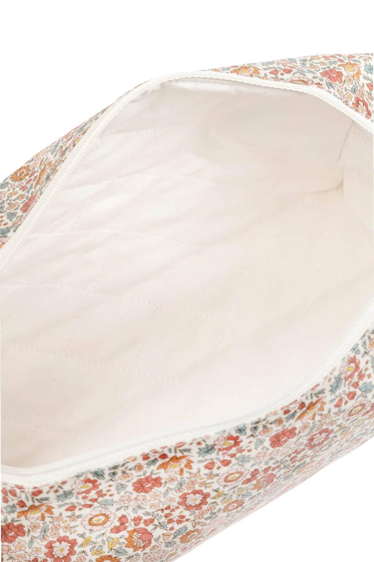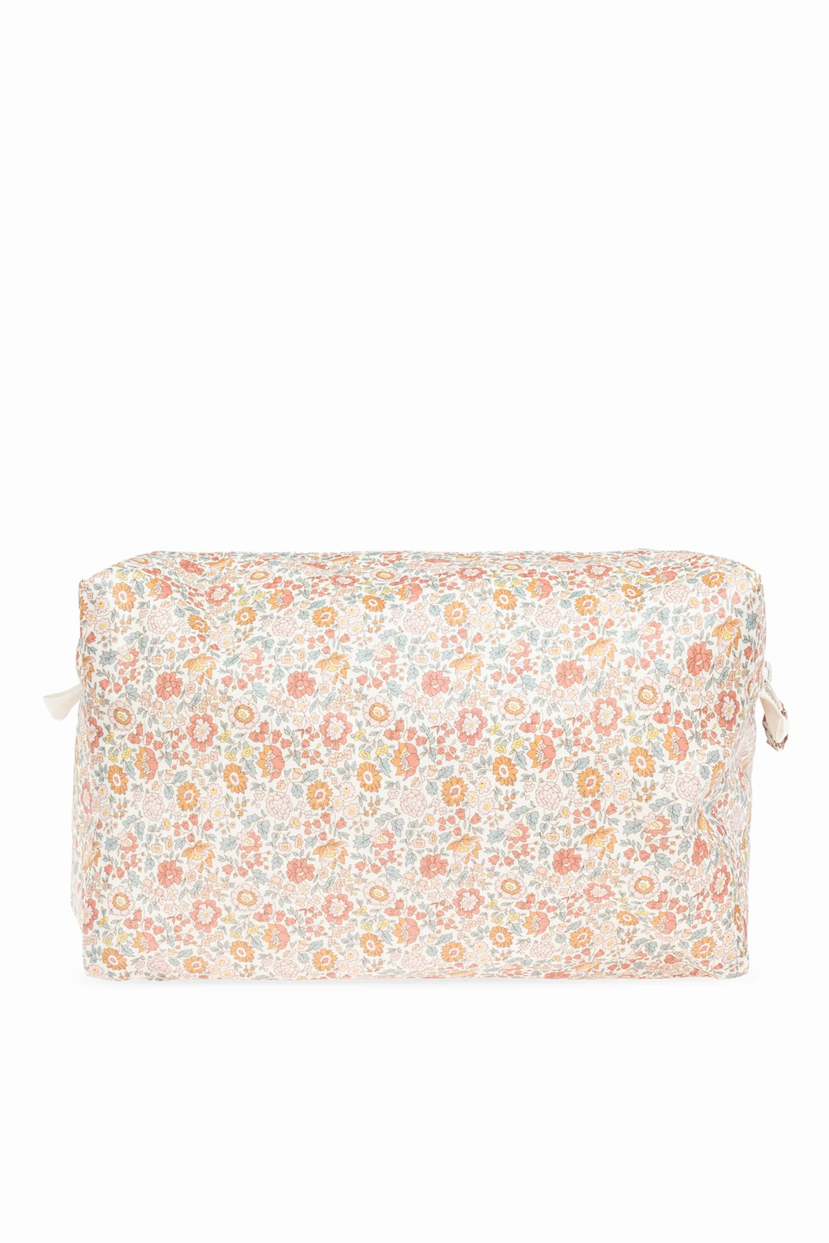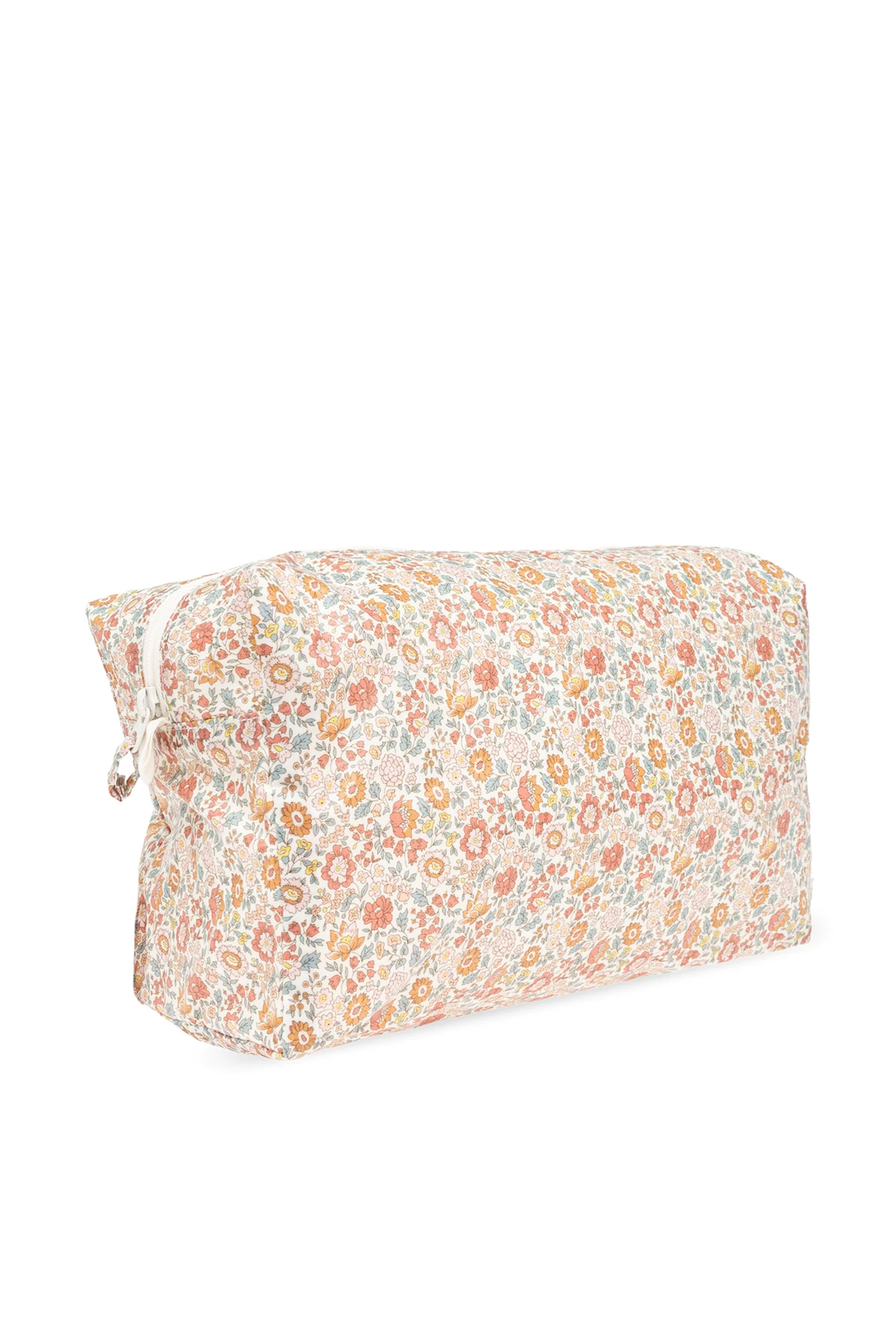 Kosmetiktasche 'Troussg' von der renommierten französischen Marke Bonpoint ist die Quintessenz von Eleganz und Raffinesse, ideal für die Kleinsten. Das außergewöhnliche Design mit rechteckiger Form und sanft abgerundeten Kanten oben zieht mit seinem reichen, blumigen Muster die Blicke auf sich. Verschiedene Blumen in pastelligen Tönen von Orange, Rosa, Gelb und Grün bilden eine harmonische Komposition, die durch ihre Dekorativität begeistert.