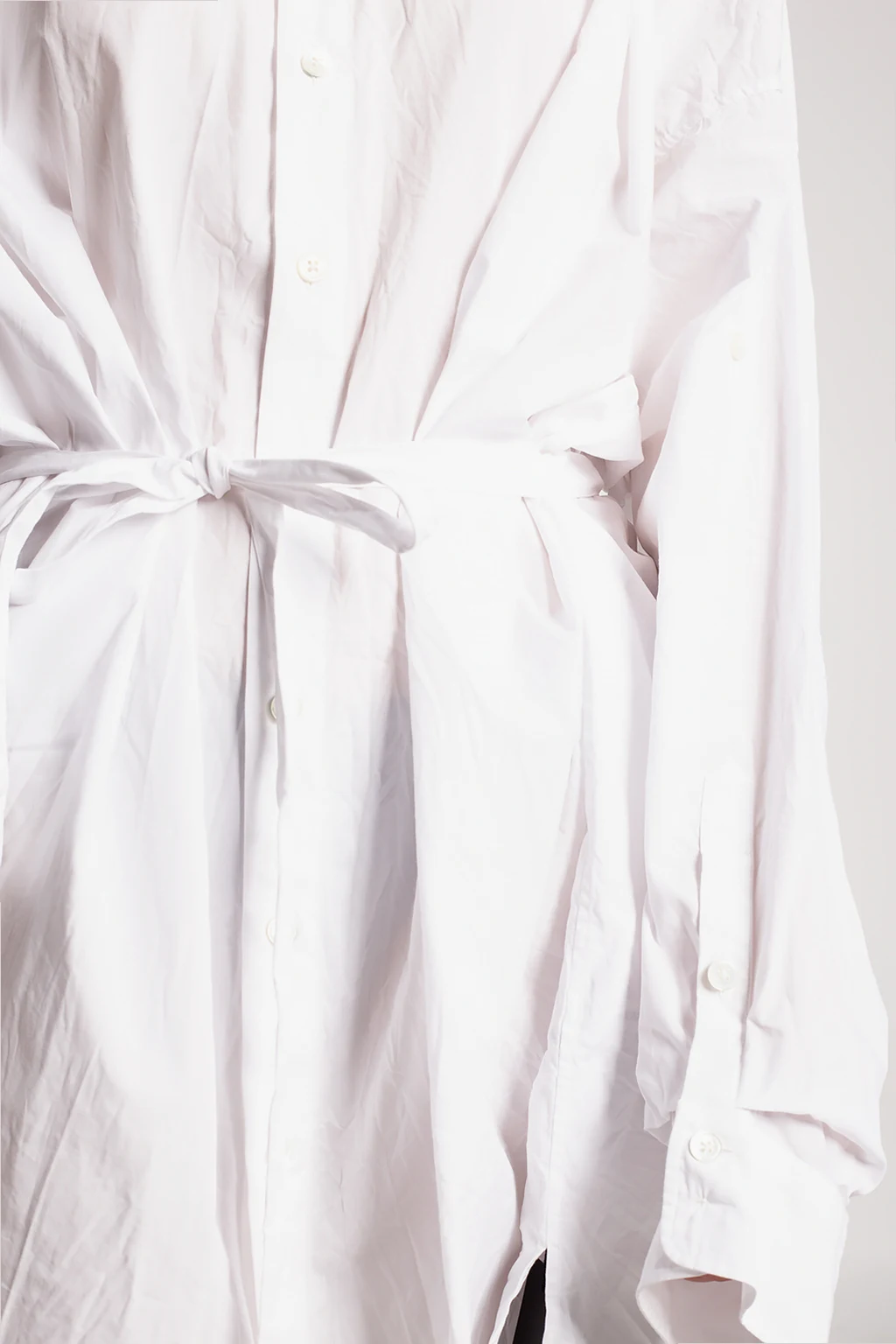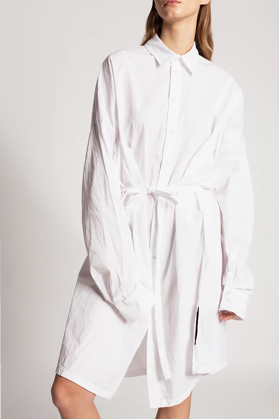 White shirt from Ann Demeulemeester. Made of cotton, this garment features button fastenings, a decorative tie belt and long sleeves with banded cuffs.