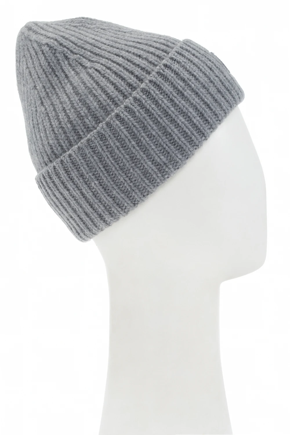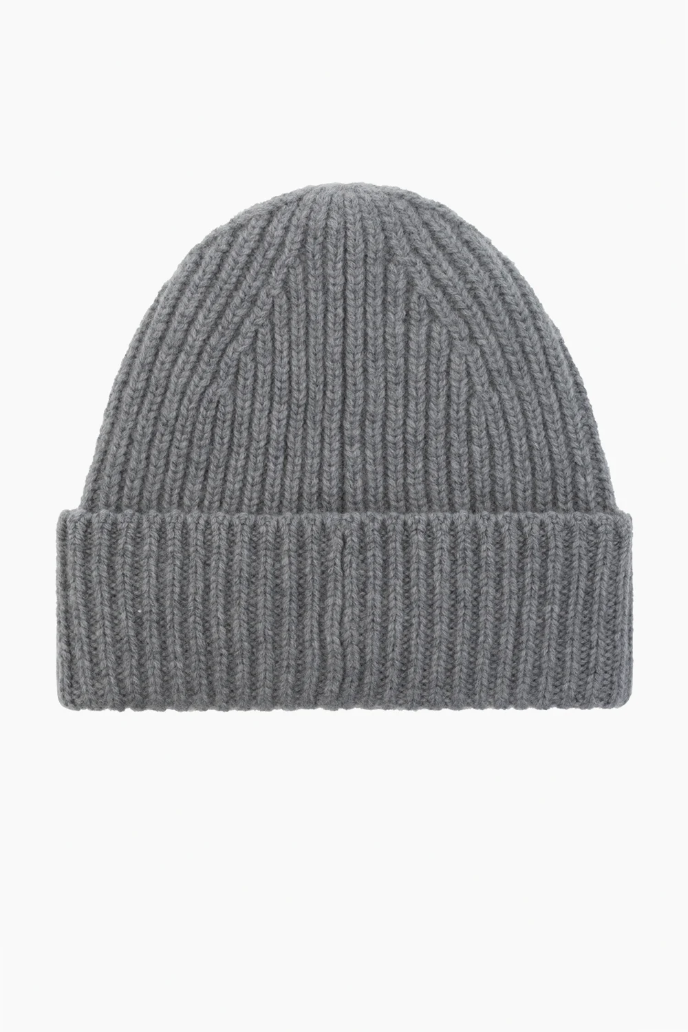 Light grey hat from Acne Studios Kids. Crafted from wool with ribbed detailing, this item showcases a branded patch on the front.