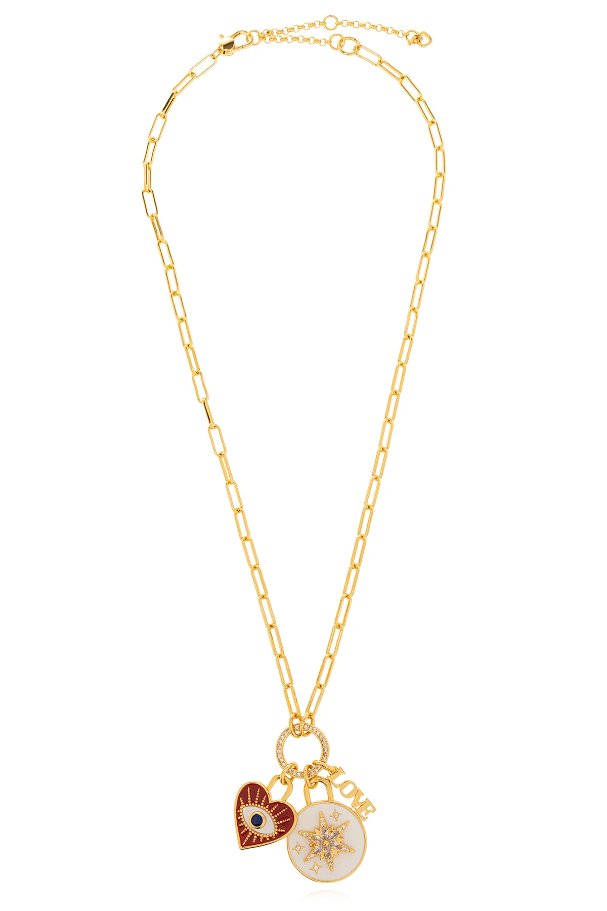 Gold-tone necklace from Kate Spade, the ‘Like Magic’ collection. This item adjusts via a lobster clasp and showcases decorative charms with magical motifs, colourful crystals and glistening enamel finishes as well as an engraved logo on the back.