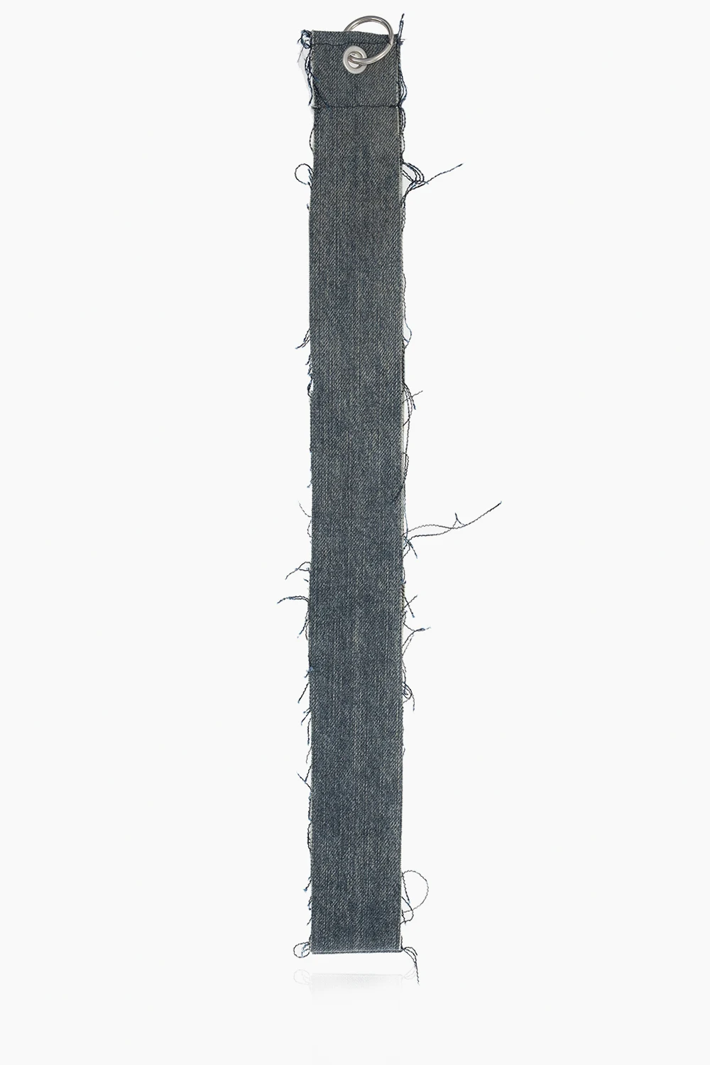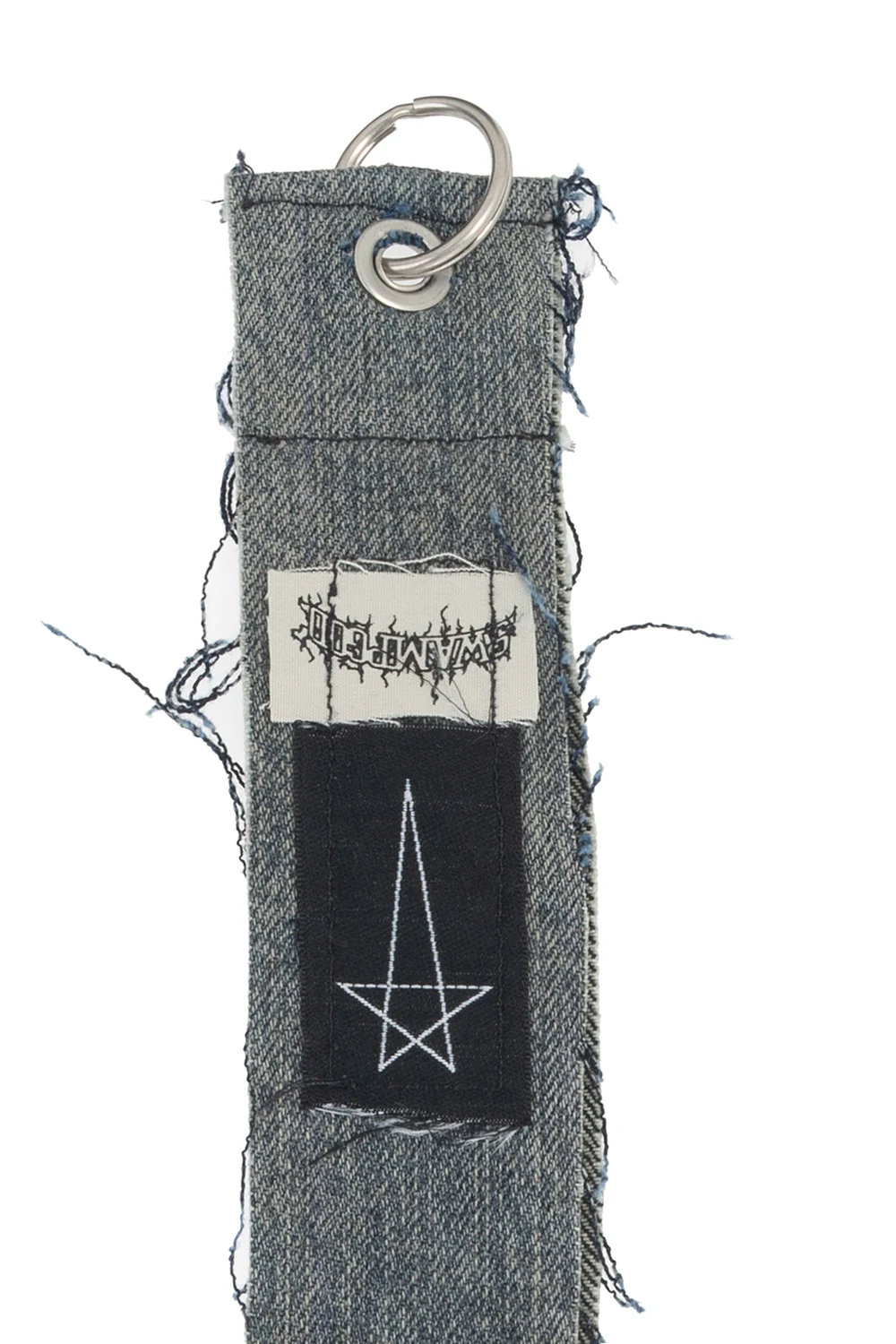 Blue denim lanyard from Rick Owens x Swampgod. Made of cotton, this item showcases black, grey and white patches and a keyring.