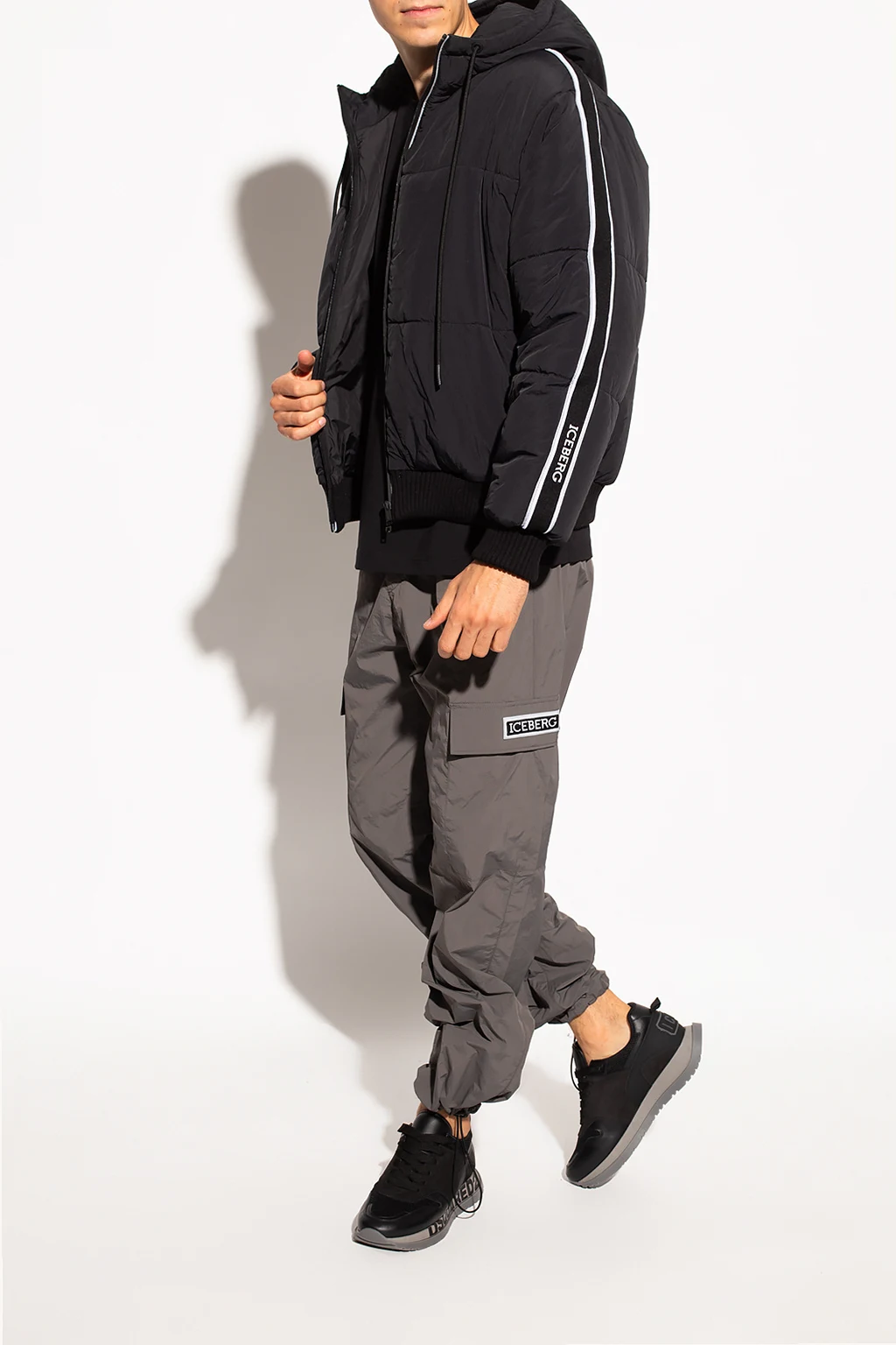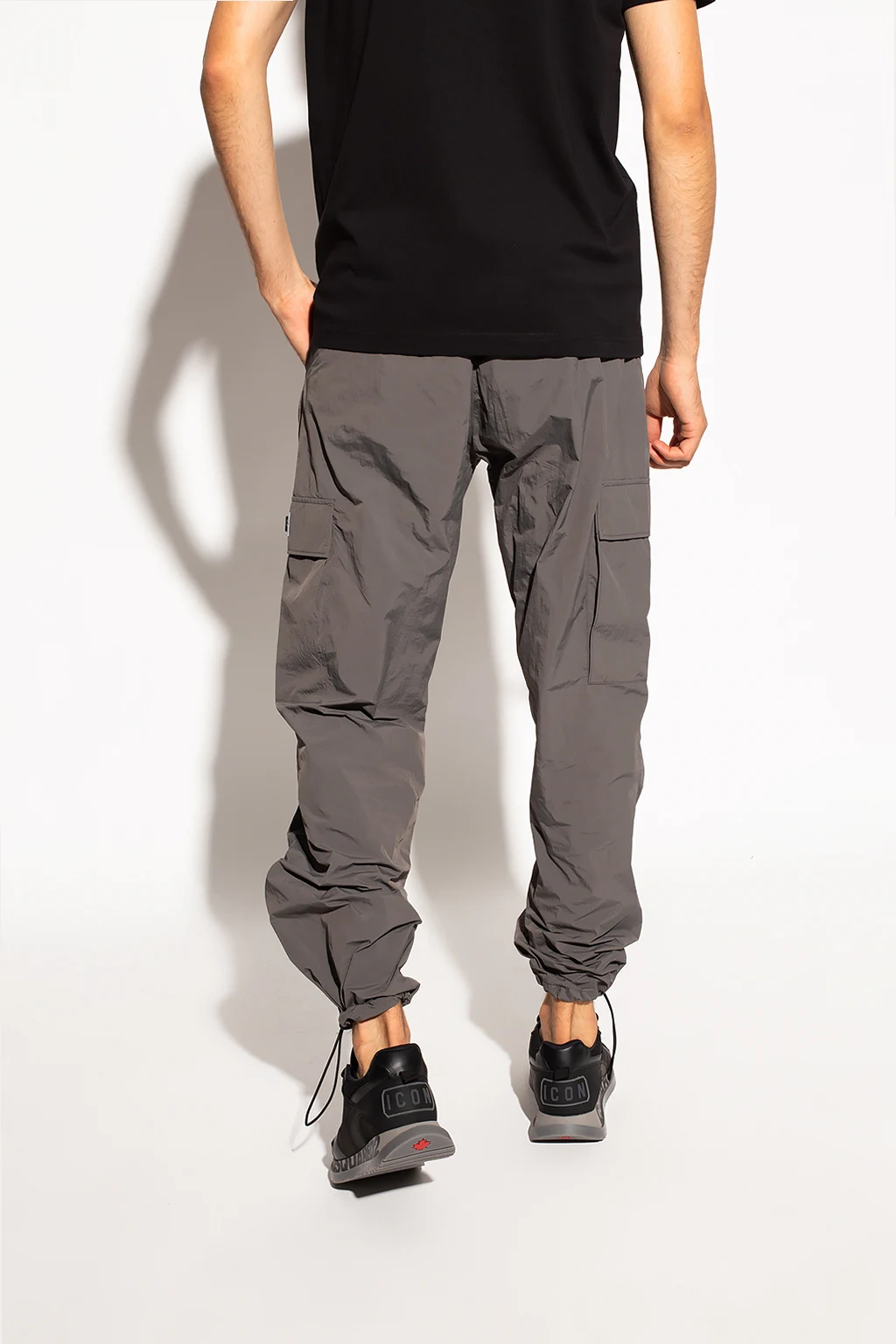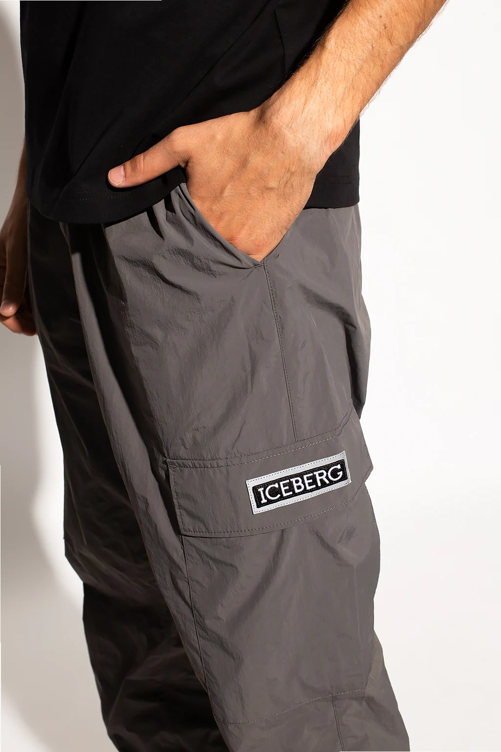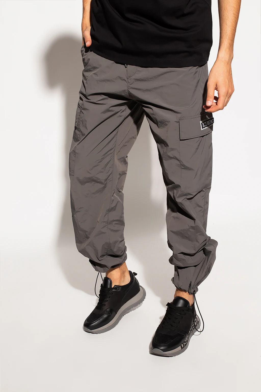 Grey sweatpants from Iceberg. Fastened with drawstrings, this design features two snap-fastened flap pockets, sewn-on logo, two front pockets, two back pockets and drawstring cuffs.