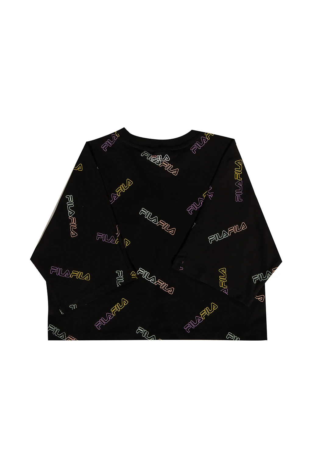 Black crewneck T-shirt from Fila Kids. Made of cotton with a cropped silhouette, this style features a colourful graphic print with a logo for brand recognition.
