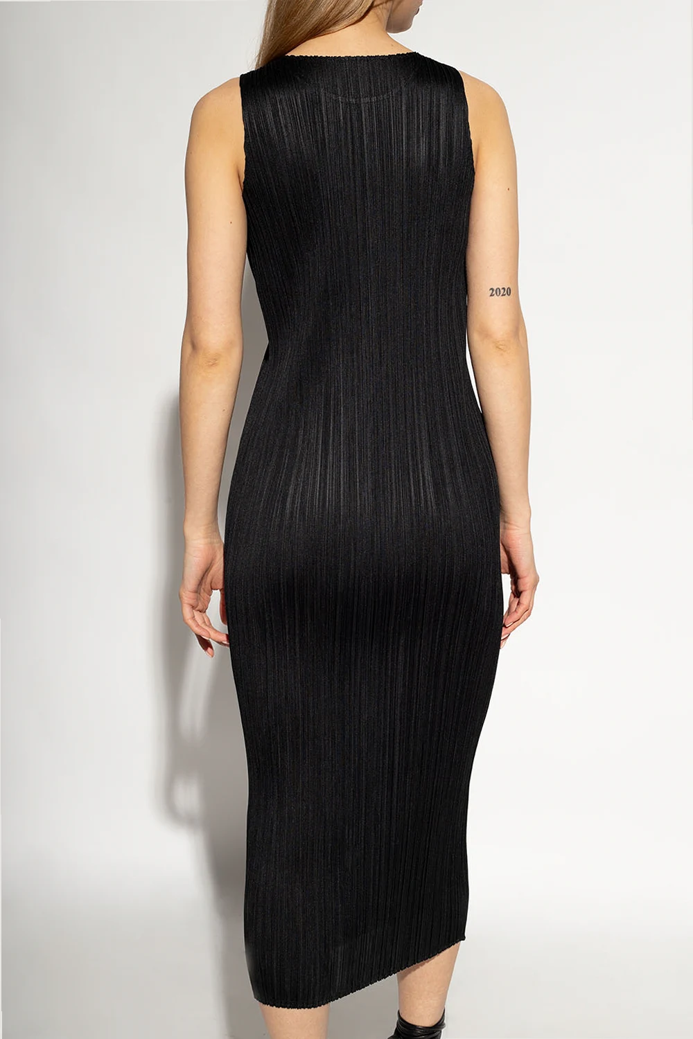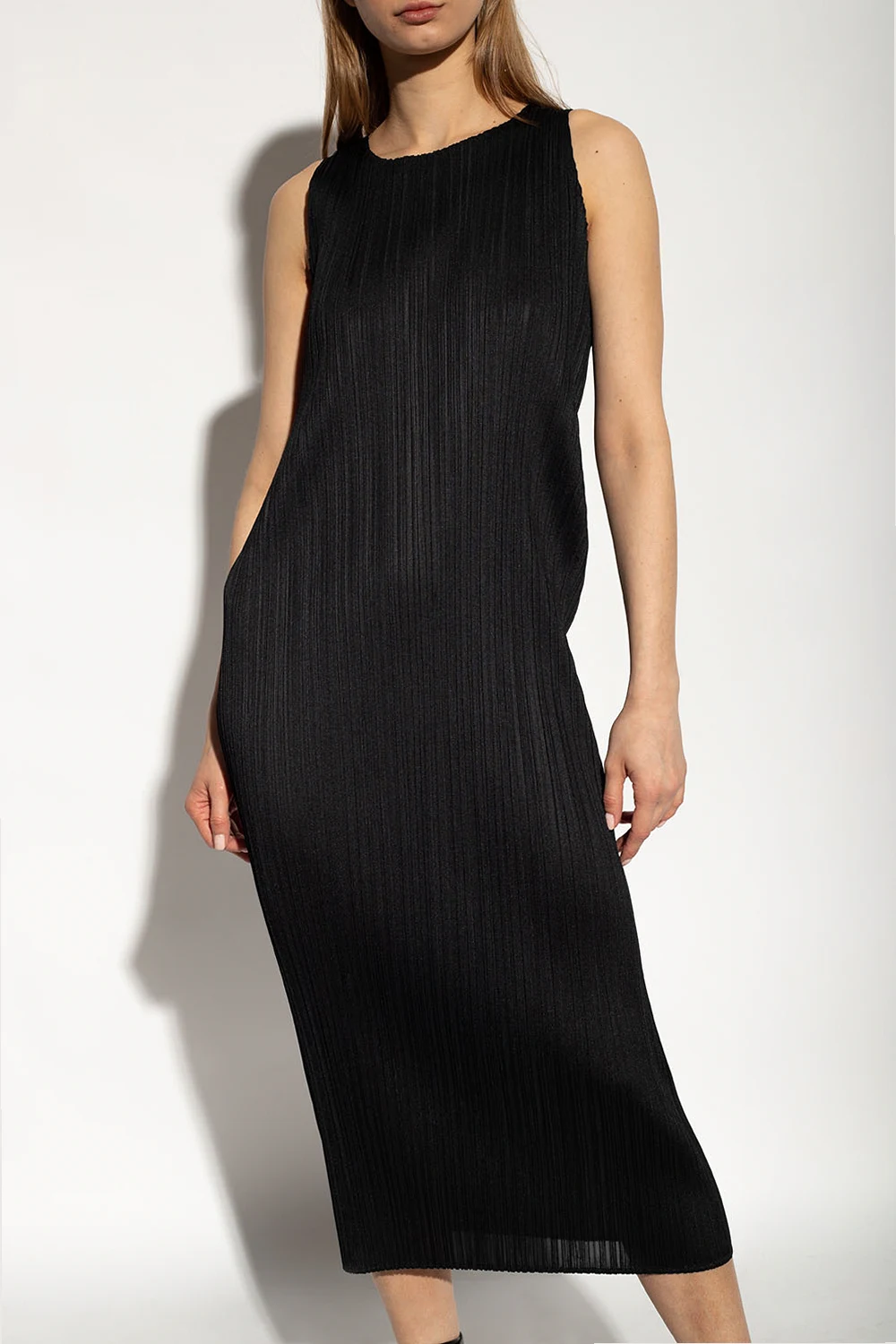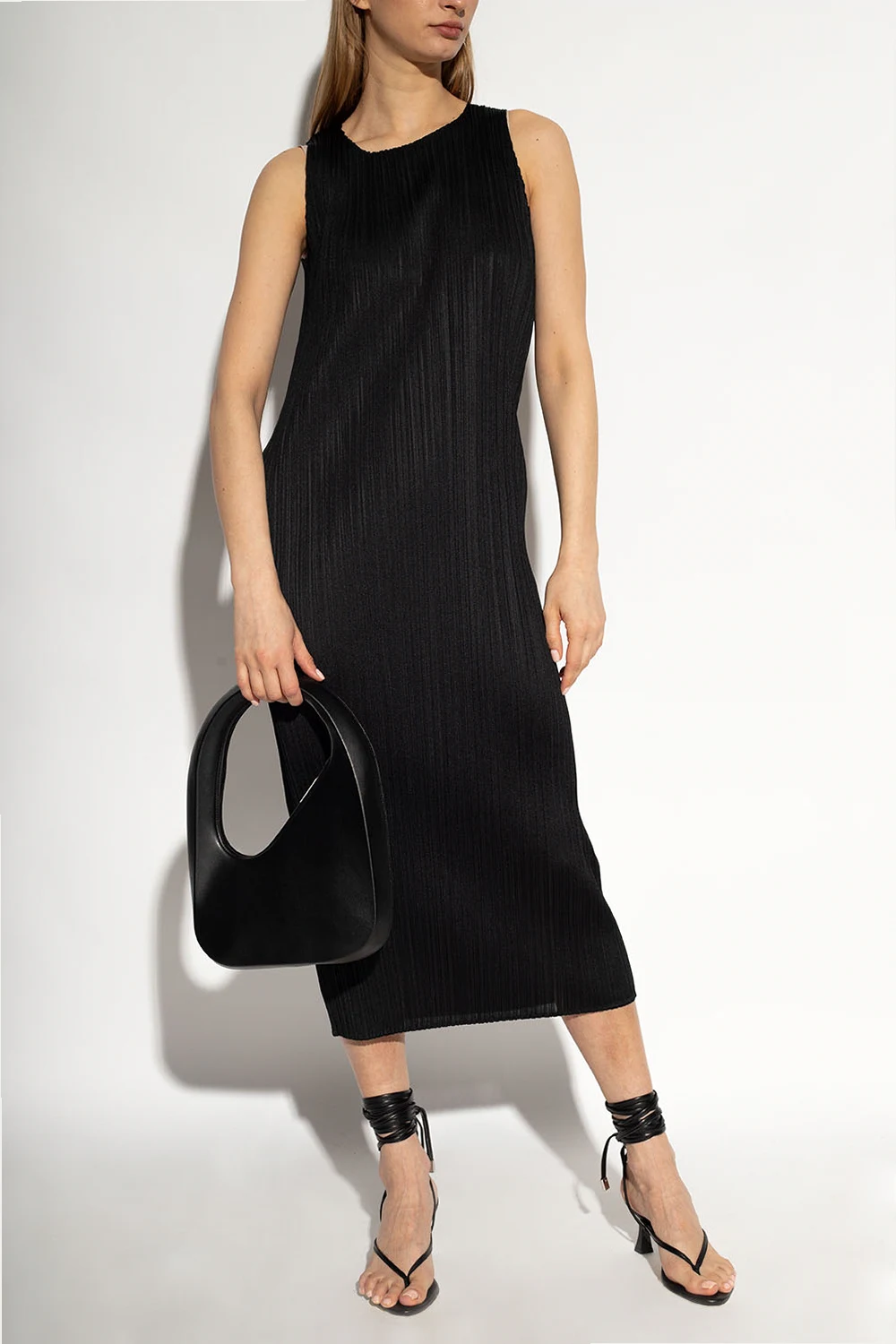 Black slip dress with a round neck from Issey Miyake Pleats Please.