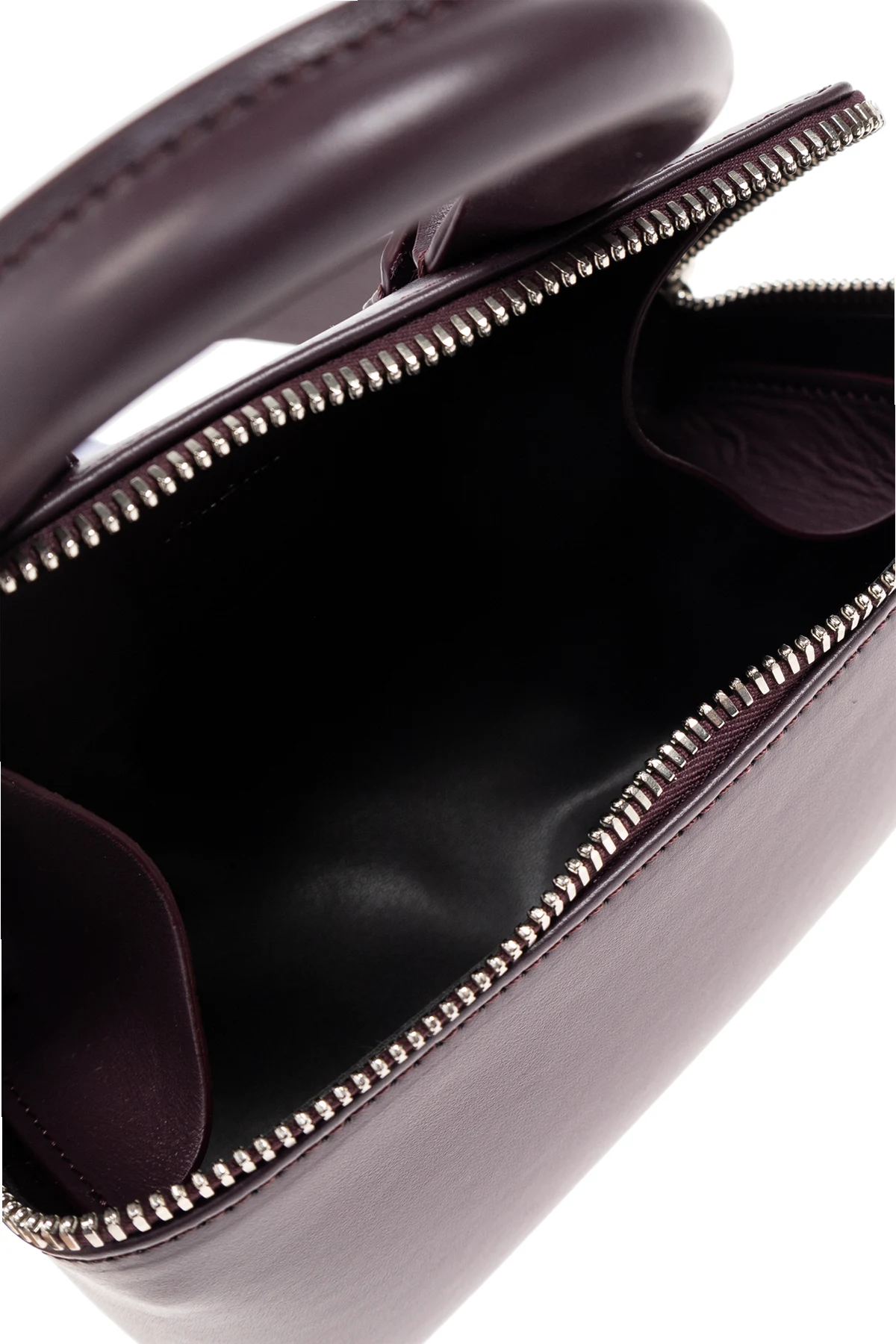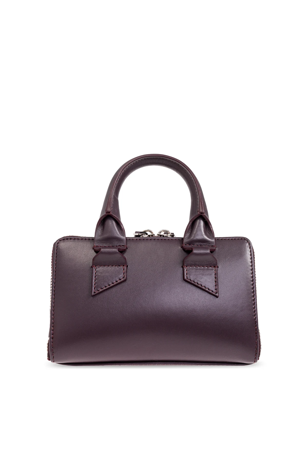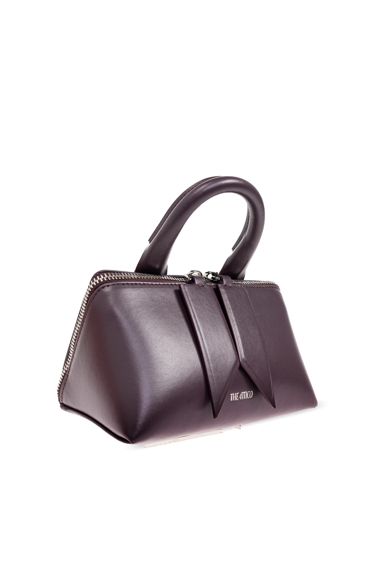 Das dekorative Detail auf der Vorderseite, das an zwei Falten erinnert und mit dem Logo „THE ATICO“ hervorgehoben ist, macht diese Tasche einzigartig. Der solide, abgerundete Griff verleiht klassischen Charme, während der metallene Reißverschluss und das dunkle, elegante Innenleben mit Fach und Einstecktasche die Liebe zum Detail unterstreichen.