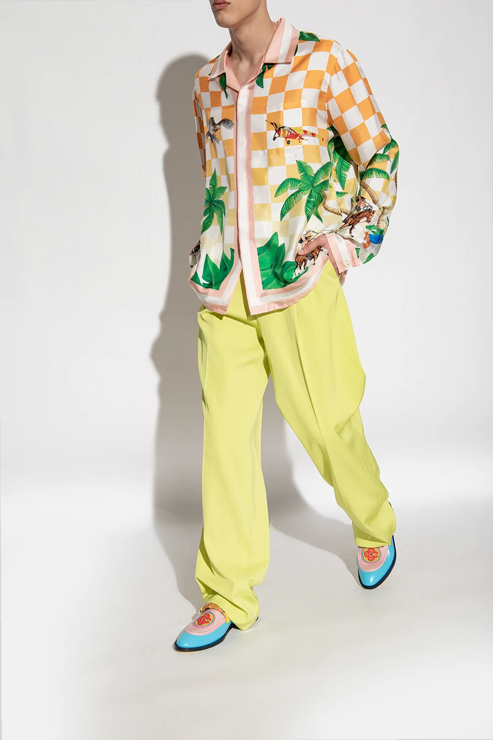 Multicoloured 'Memphis' slides from Casablanca. Crafted from calf leather, this model sits on a brown leather sole and features a bamboo strap and a rubber logo application at the back.