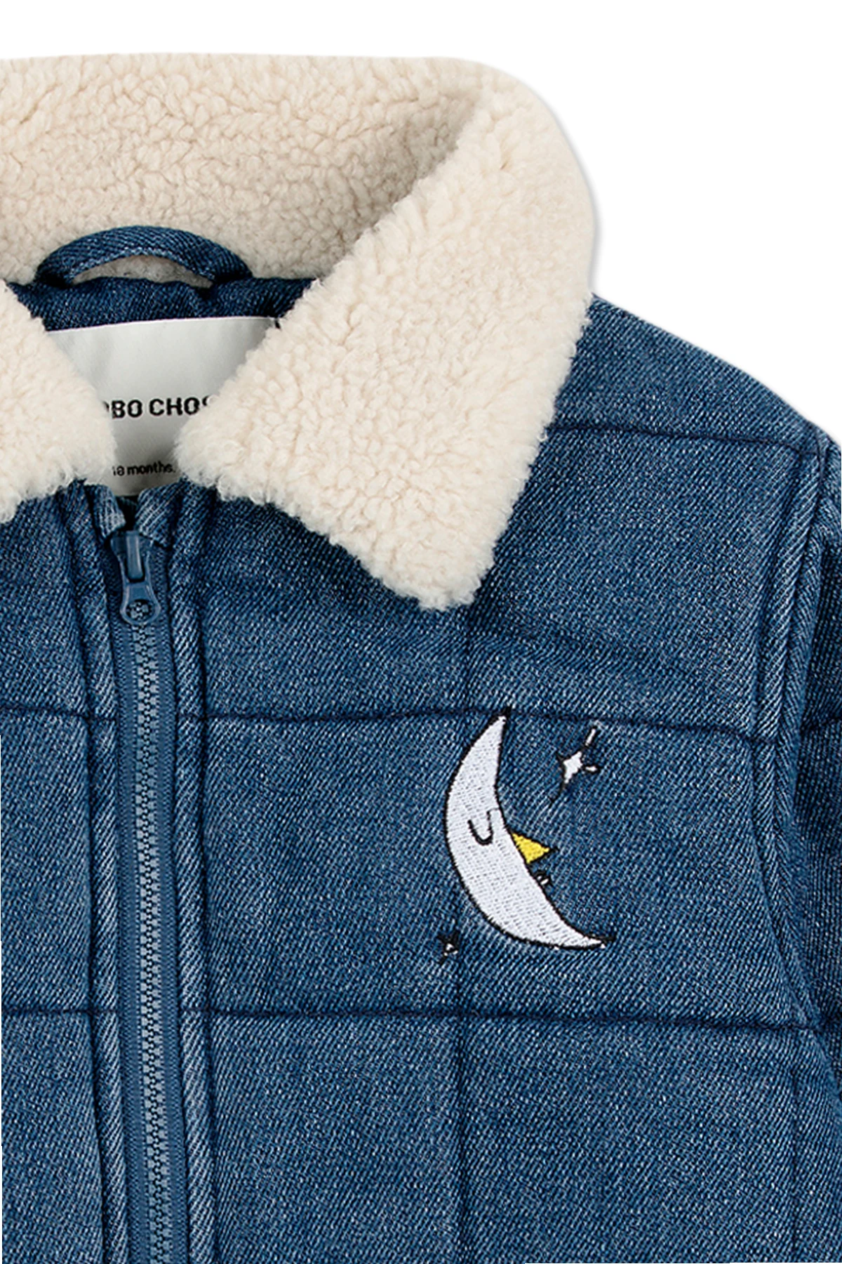 Die Jacke mit Mond von der renommierten Marke Bobo Choses ist Ausdruck höchster Eleganz und Komfort für die Jüngsten. Diese exklusive Jacke aus der Kinderkollektion besticht durch ihren einfachen Schnitt, das gesteppte Muster und einzigartige Details. Sie ist aus hochwertigem, dunkelblauem Stoff gefertigt, der an Denim erinnert und nicht nur Stil, sondern auch Bequemlichkeit bietet.