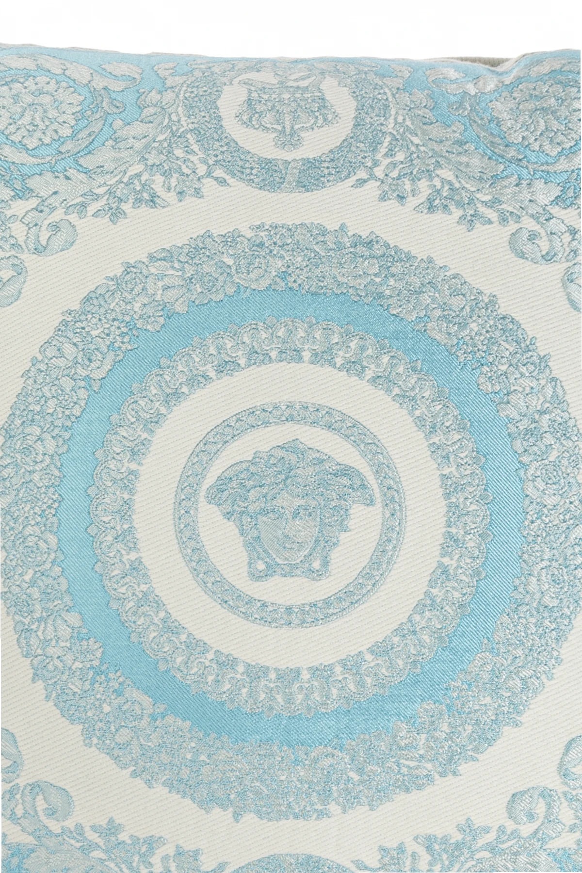 Wir präsentieren Ihnen ein exquisite Dekokissen aus der exklusiven Versace Home -Kollektion, das mit seinem raffinierten `Crete de Fleur`-Muster bereits auf den ersten Blick verzaubert. Detailreich entführt es uns in eine Welt des Luxus, in der der dominante Blauton mit einem cremefarbenen Hintergrund verwoben ist, um ein Werk voller Eleganz und Stil zu kreieren.