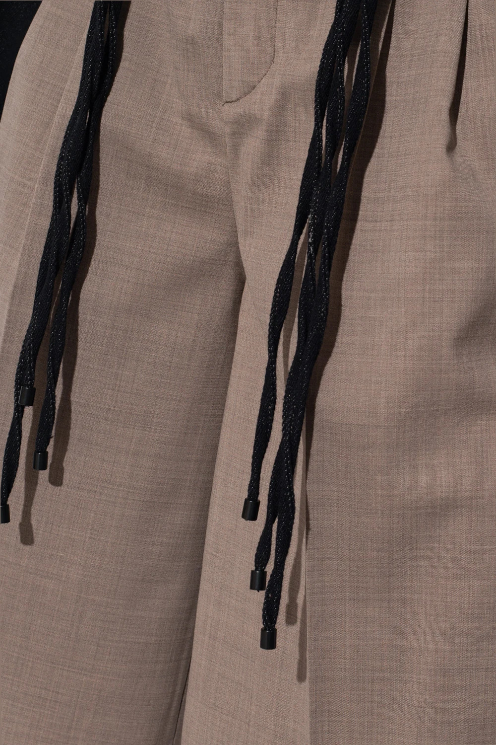 Brown and grey ‘Arrina’ pleat-front shorts from The Mannei. Crafted from wool, this garment features a zip and button closure and four pockets.
