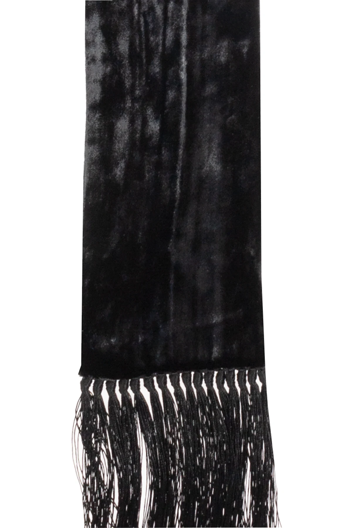Ihre schwarze Farbe betont den exklusiven Charakter, und das Fehlen eines Musters macht sie zu einem vielseitigen Accessoire für verschiedene Outfits. Die lange und schmale Konstruktion ermöglicht kreative Bindemethoden, und die auffälligen Fransen an den Enden verleihen ihr ein stilvolles Finish.