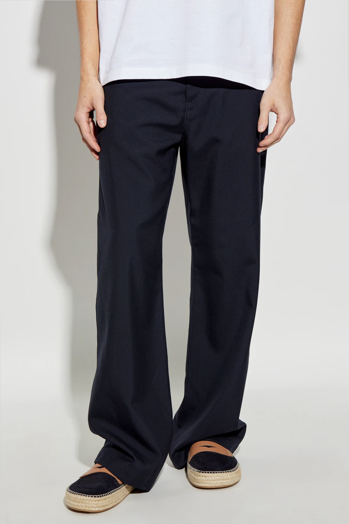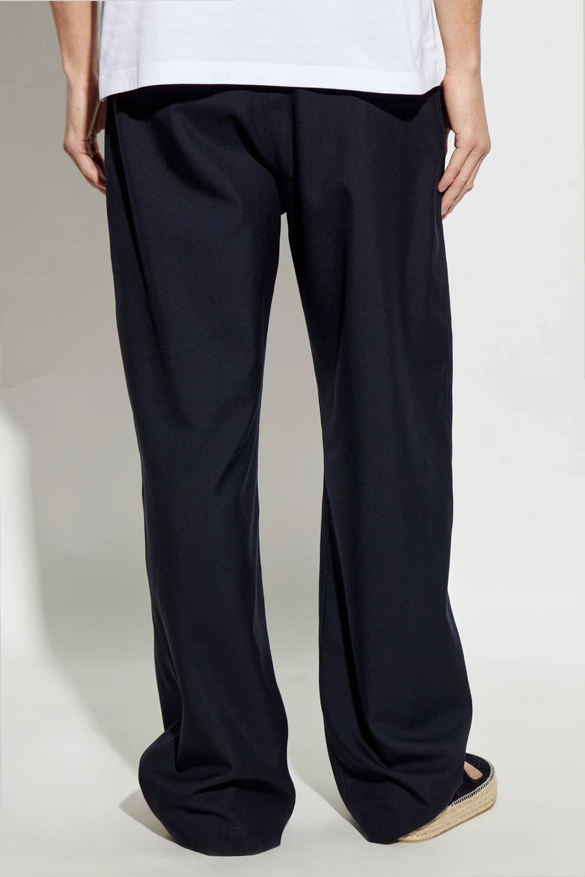 Entdecken Sie einzigartigen Stil und Komfort mit den Wollhosen aus der exklusiven Kollektion der Marke Marni. Diese marineblauen Herrenhosen zeichnen sich durch einen geraden, lockeren Schnitt aus, der nicht nur Bewegungsfreiheit, sondern auch Eleganz und Raffinesse bietet. Aus hochwertiger Wolle gefertigt, eignen sie sich perfekt für formelle Anlässe und verleihen jedem Outfit einen Hauch von Luxus.