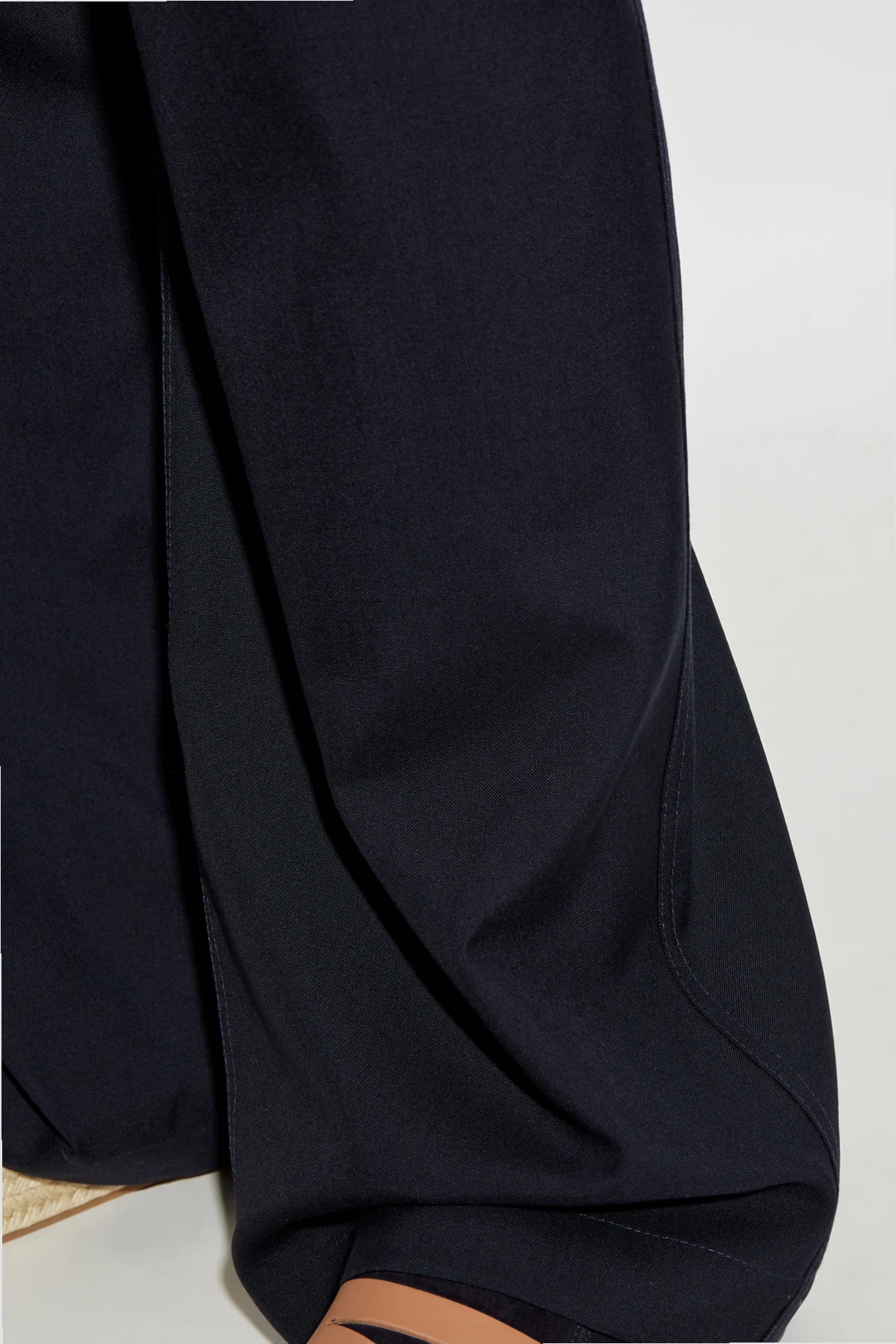 Die Hosen bestechen durch ein minimalistisches Design mit klassischen Details wie Seitentaschen und Knopf- und Reißverschluss . Die volle Beinlänge betont ihren zeitlosen Stil, und das Fehlen sichtbarer Schriftzüge oder Logos verleiht ihnen Subtilität.