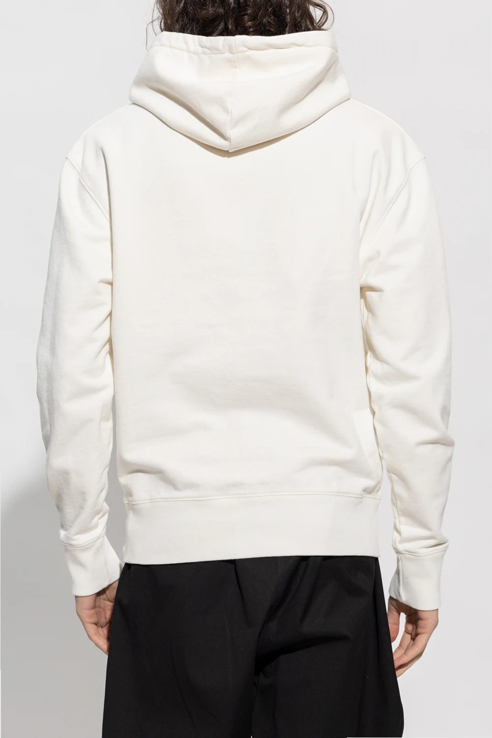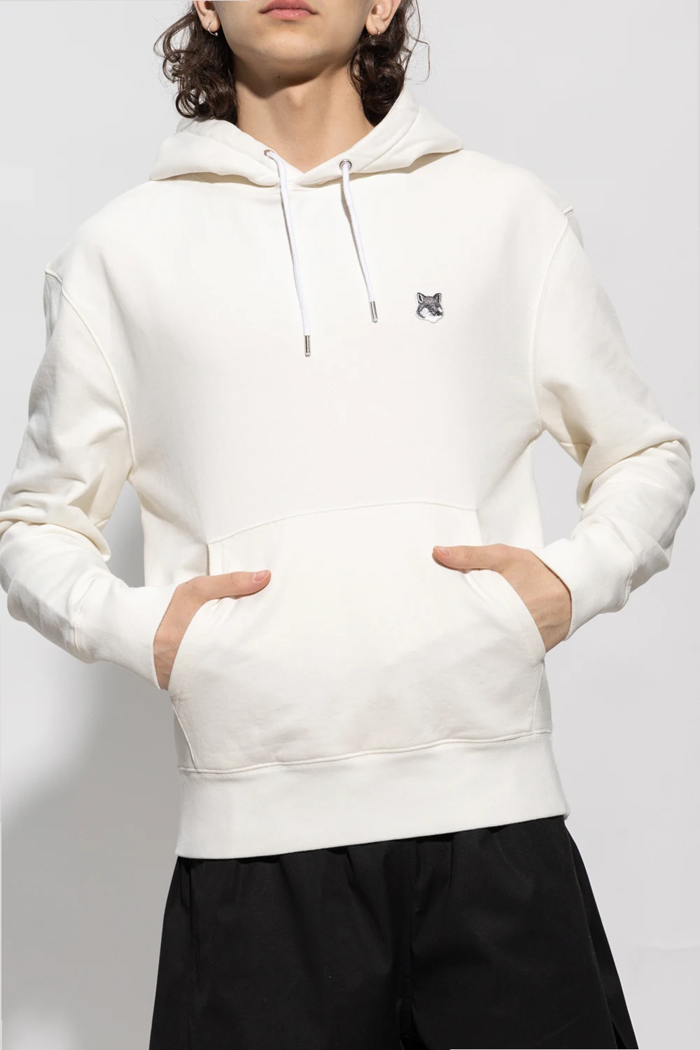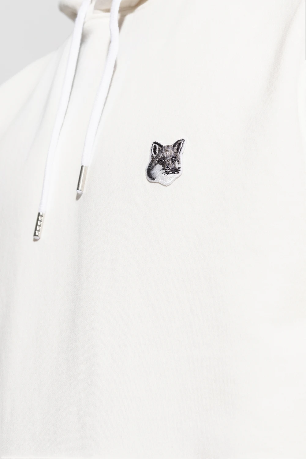 White hoodie from Maison Kitsune. Made of cotton, this design features a drawstring hood, logo patch, slip pocket and ribbed trims at the hem and cuffs.
