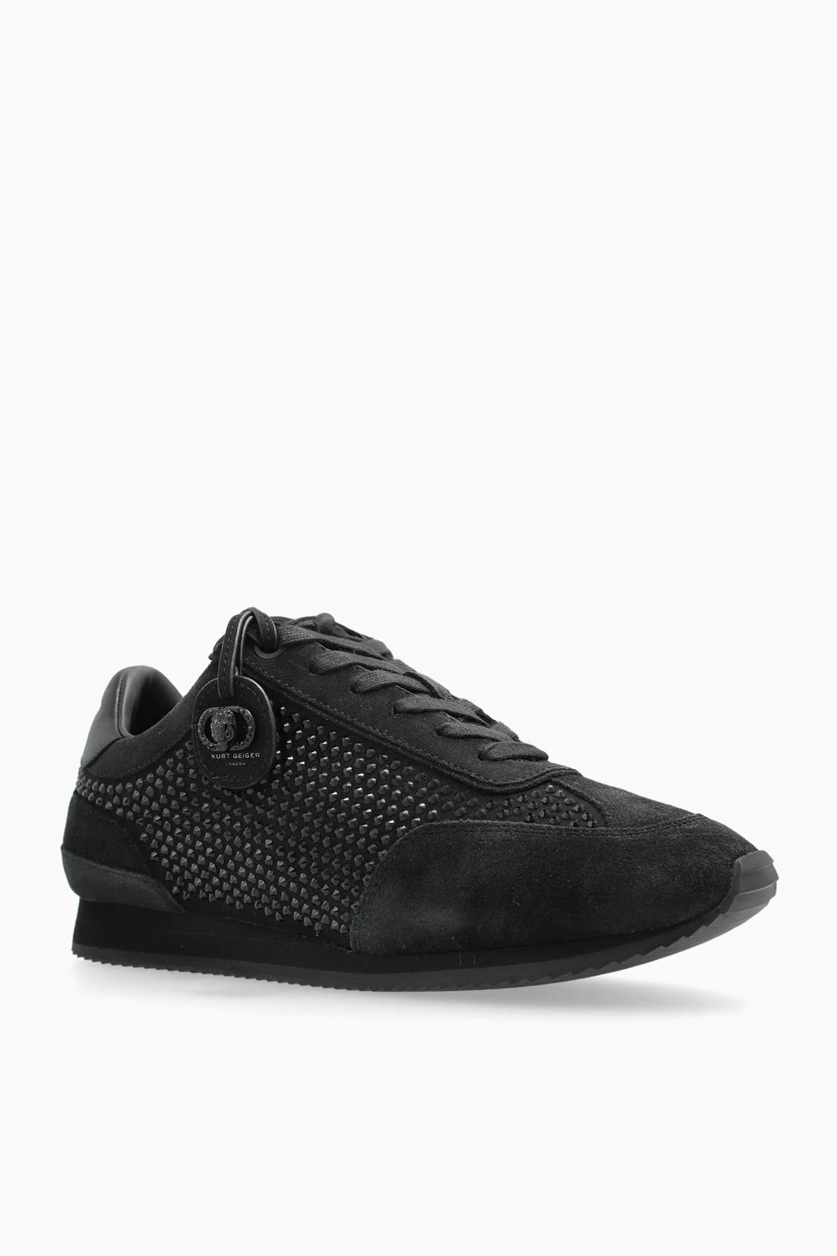 Gefertigt aus einer Kombination von eleganten Leder und Wildlederimitat mit subtilen Perforationen, bieten sie sowohl Stil als auch Komfort. Das Innere der Schuhe ist sorgfältig gepolstert, mit einer Einlegesohle verziert mit der goldenen Aufschrift "KURT GEIGER LONDON", was ihnen einen luxuriösen Charakter verleiht. Die flache Sohle und die verstärkte Ferse bieten täglichen Komfort und Unterstützung. Ein zusätzlicher Vorteil ist der runde Schlüsselanhänger mit Logo, der an den Schnürsenkeln befestigt ist und den Schuhen einen einzigartigen Ausdruck verleiht.