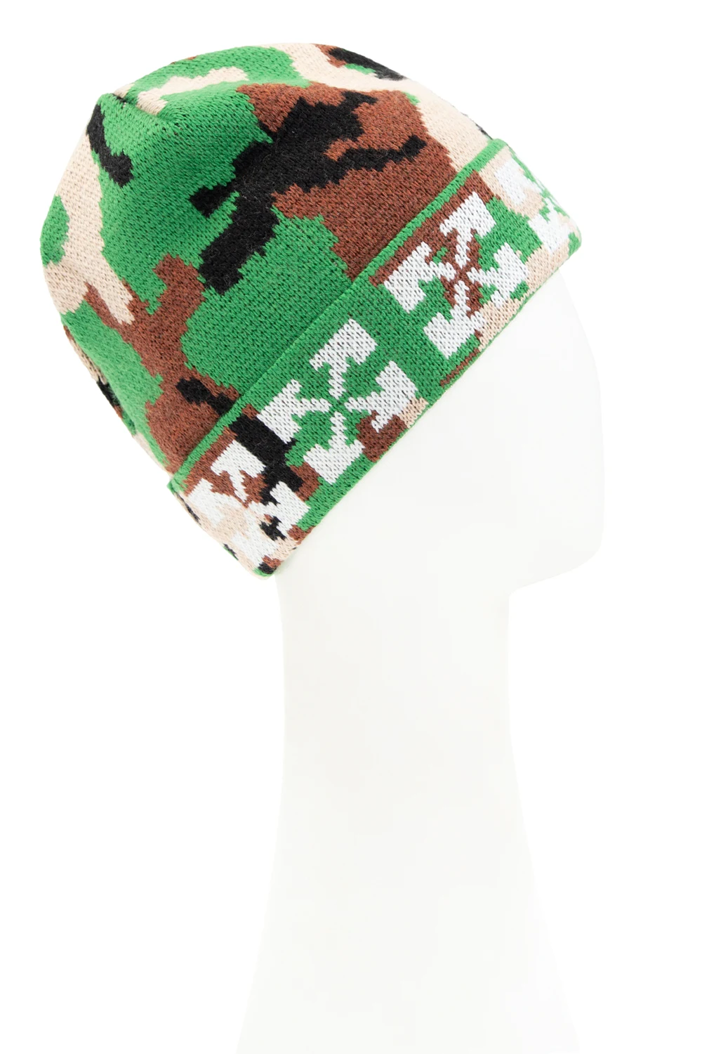Multicoloured hat from Off-White Kids. Crafted from wool, this item showcases a camo motif accompanied by the brand's logo in white.