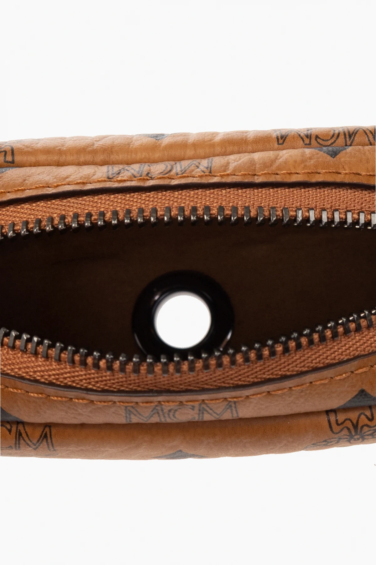 Brown and black pet litter bag holder from MCM. Crafted from coated ‘Visetos’ monogrammed canvas, this design secures with a zip and features a lobster clasp and a hole on the base for pulling out litter bags.