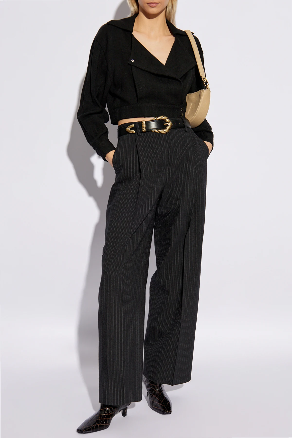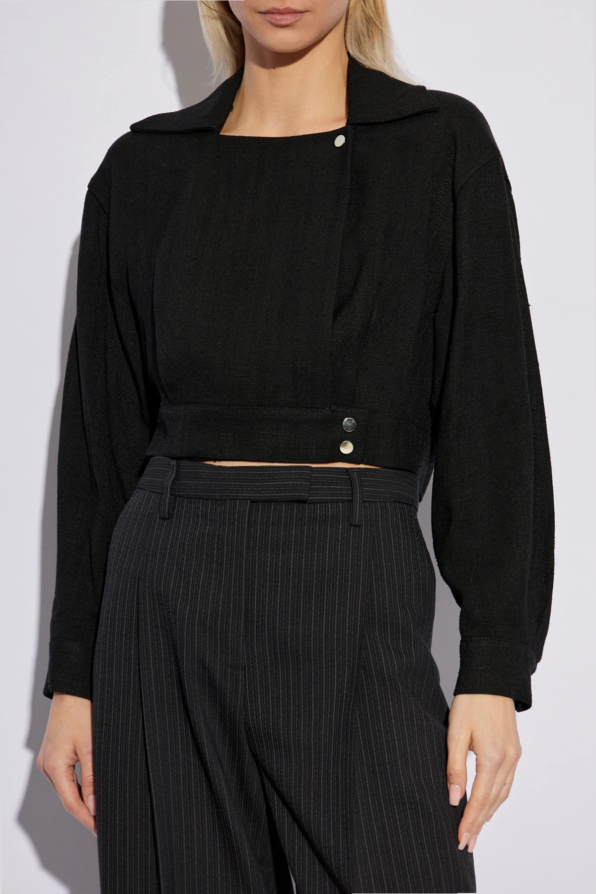 Wir präsentieren Ihnen die Jacke Ciwa , ein Werk der renommierten Marke Iro , die pariser Chic und zeitlose Eleganz verkörpert. Dieses außergewöhnliche Kleidungsstück zeichnet sich durch seinen kurzen Schnitt, der bis zur Taille reicht, und die Verarbeitung aus Materialien höchster Qualität aus. Die dominierende Farbe tiefes Schwarz macht die Jacke universell und sie lässt sich hervorragend mit verschiedenen Stylings kombinieren.