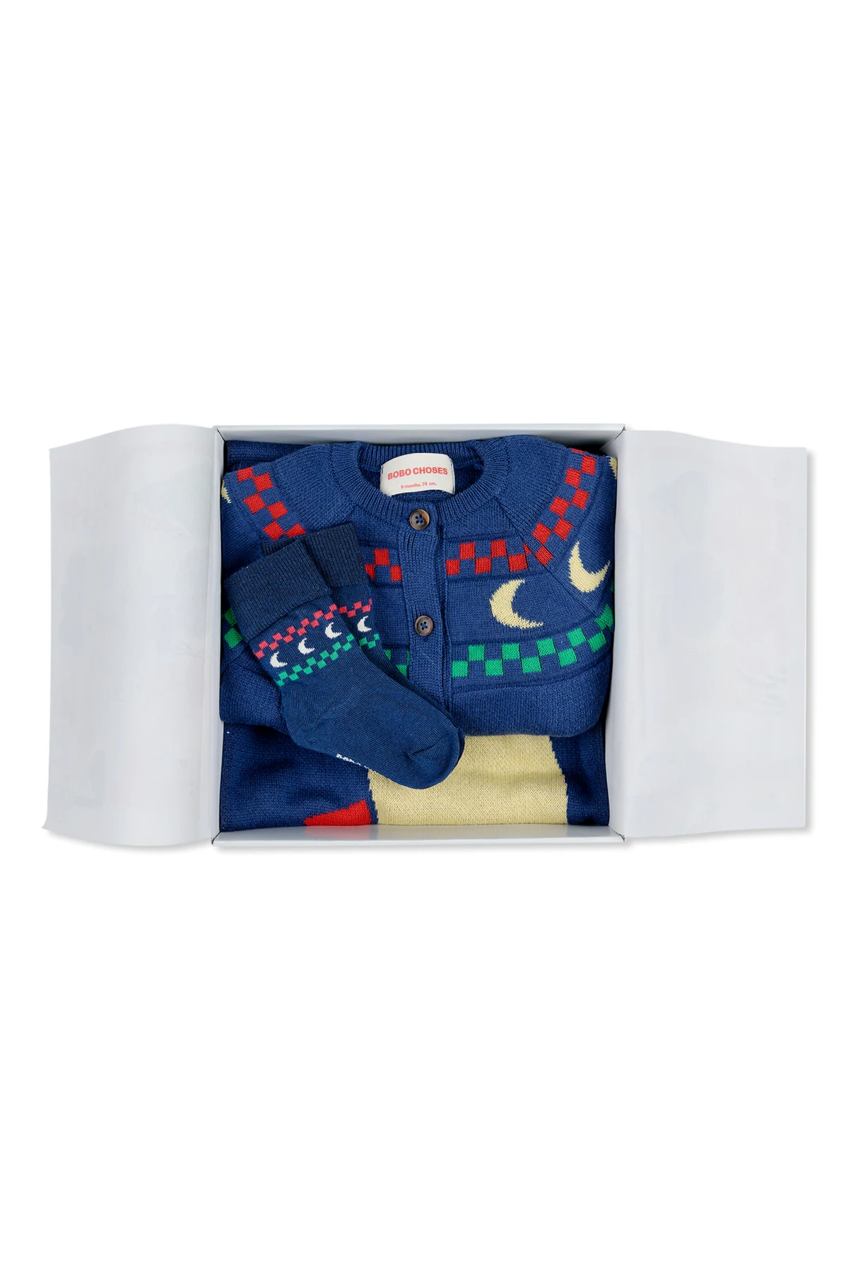 Das gesamte Set ist in einer eleganten weißen Box mit dem Logo der Marke "BOBO CHOSES" verpackt, was es zu einem idealen Geschenk macht.