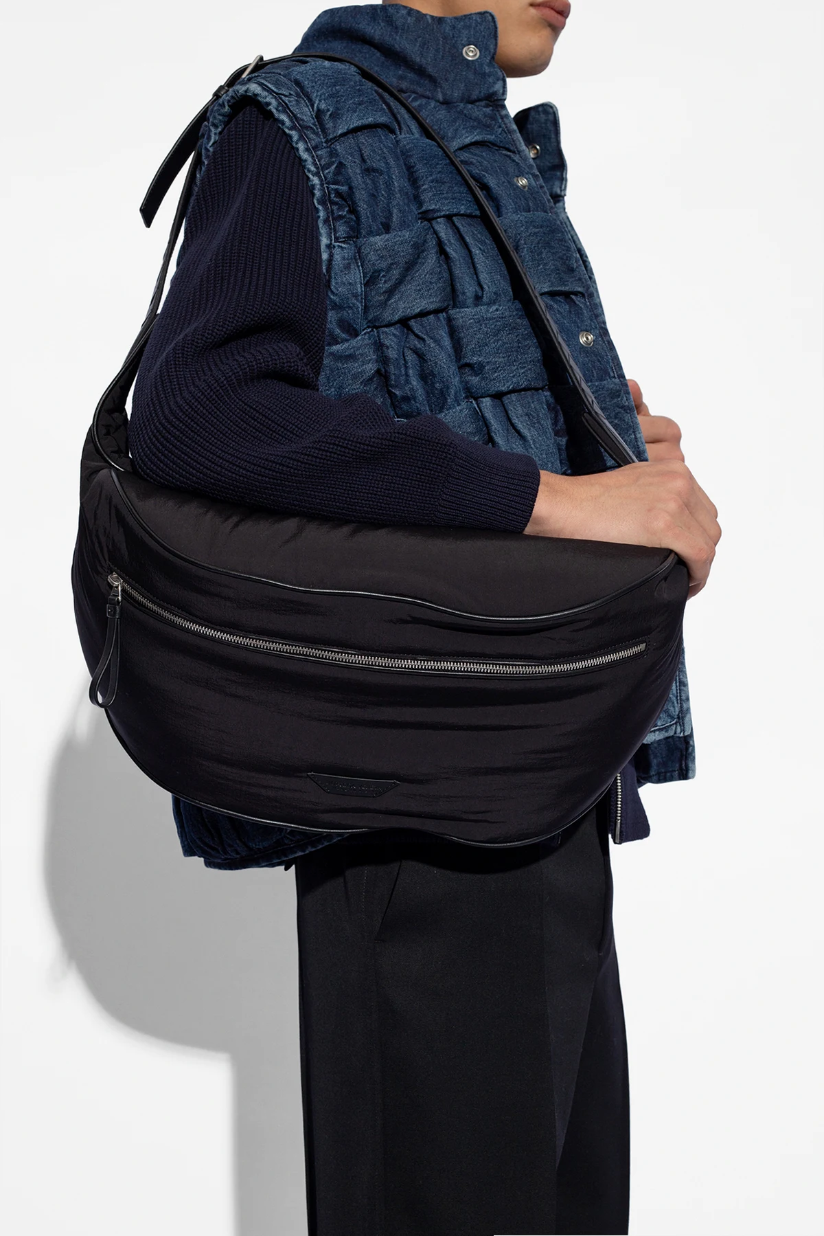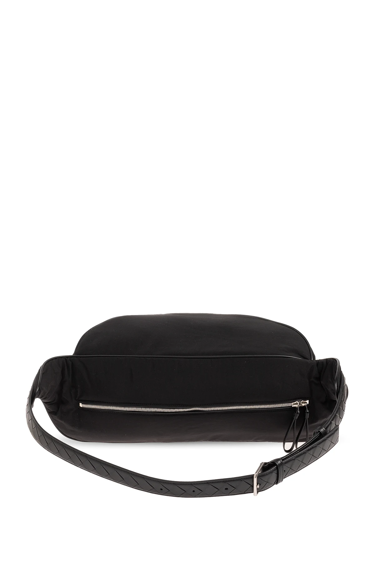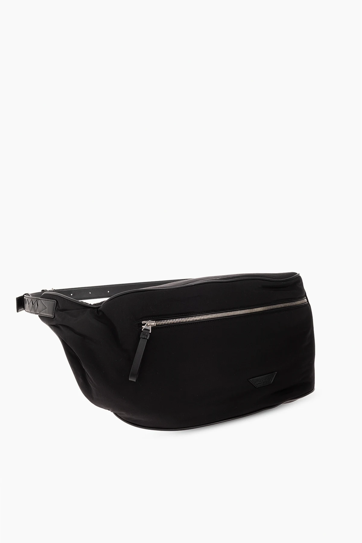Black belt bag from Bottega Veneta. Fastened with a two-way zip, this design features a logo patch and one zip pocket on the front, silver-tone metal hardware as well as an adjustable strap in Intrecciato leather and one internal compartment.