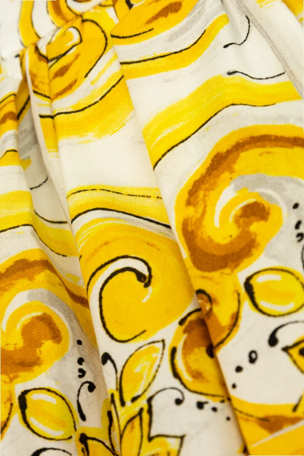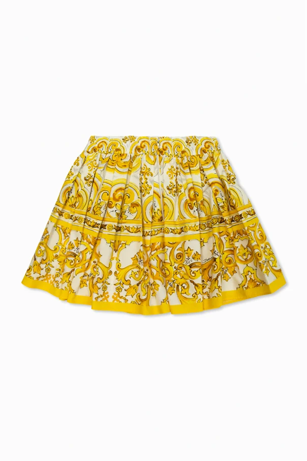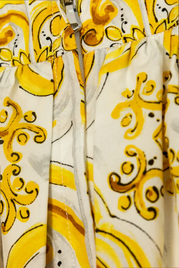 Wir präsentieren einen raffinierten Rock mit „barocco” -Print von der renommierten Marke Dolce & Gabbana Kids , der die Quintessenz von Luxus und Eleganz darstellt. Dieses einzigartige Design zeichnet sich durch einen intensiven gelben Druck auf weißem Hintergrund aus, der symmetrische barocke Muster zeigt. Verzierungen, geschwungene Linien sowie florale Motive erschaffen ein visuelles Meisterwerk, das sowohl klassisch als auch mutig ist.