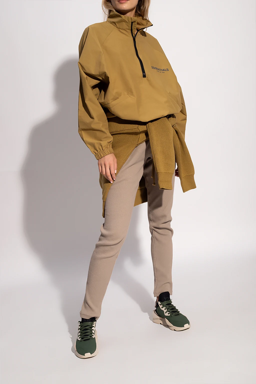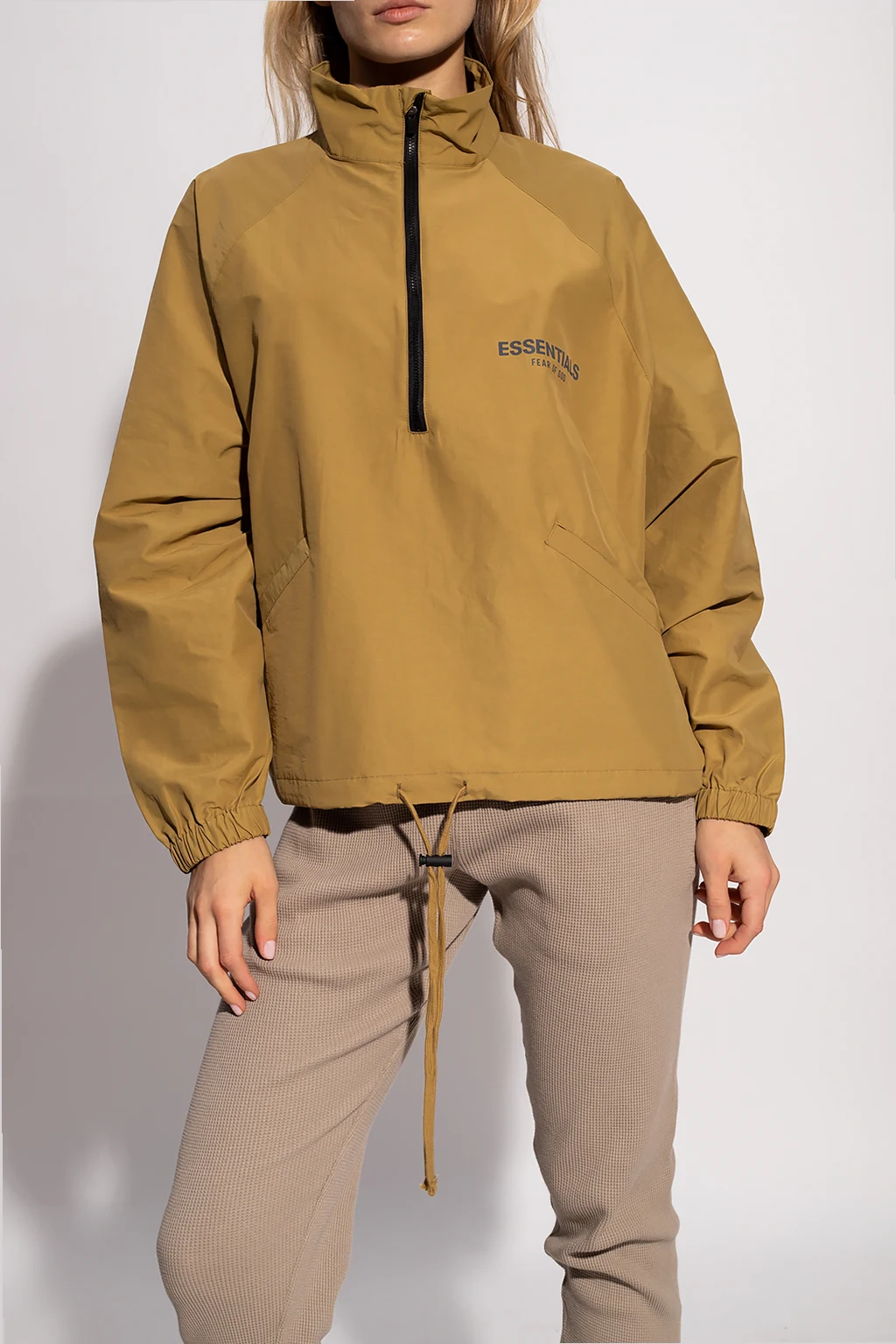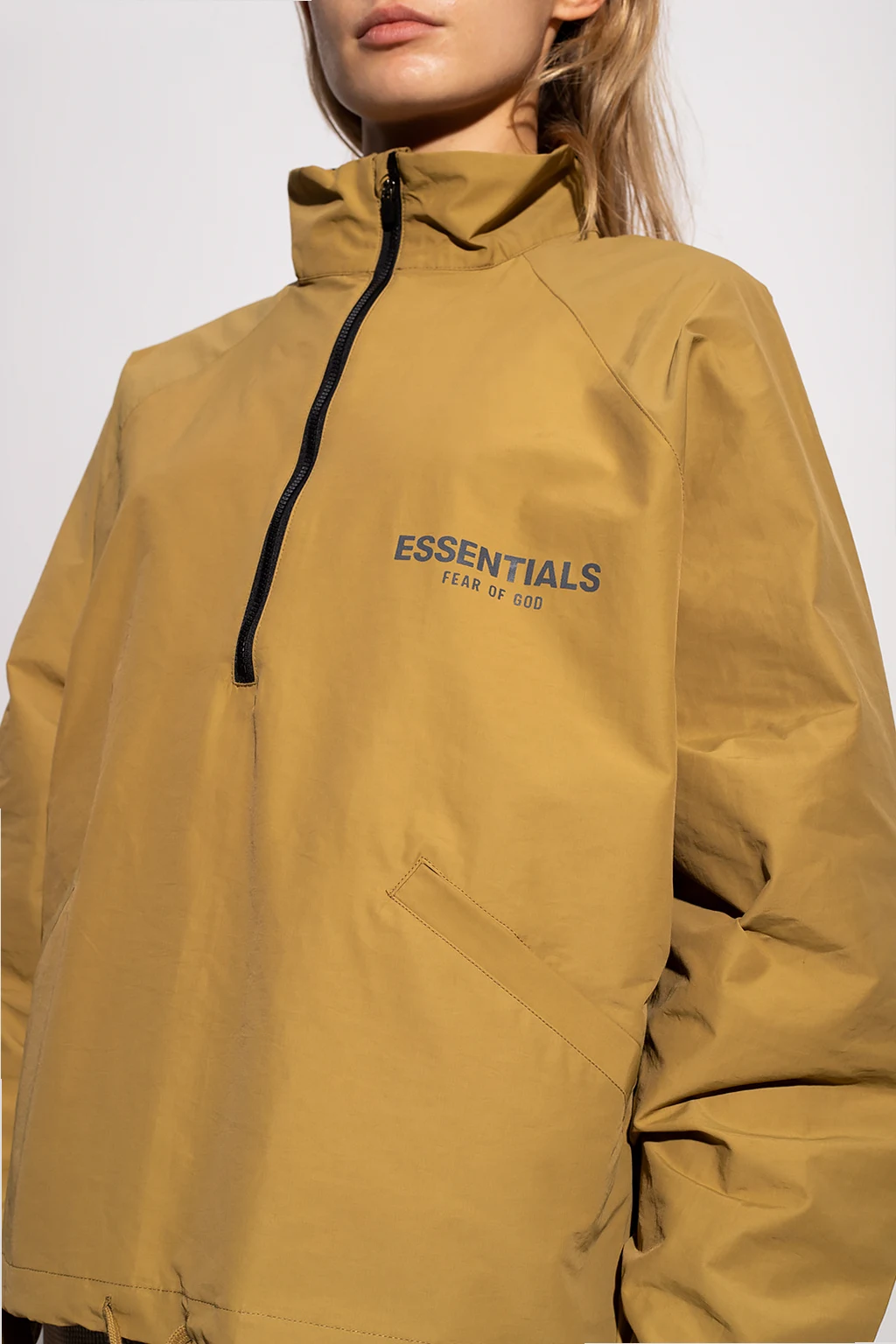 Light green jacket from Fear Of God Essentials. Fastened with a zip, this garment features a drawstring hem, silver-tone reflective logo, two slip pockets and elasticated cuffs.