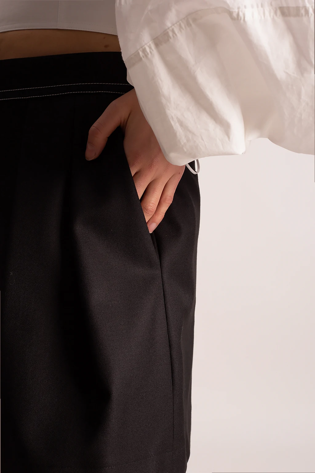 Black shorts from Stella McCartney. Crafted from cotton, this design features a zip, hook and button fastenings, decorative pleats, stitching details, two front pockets and two back pockets.