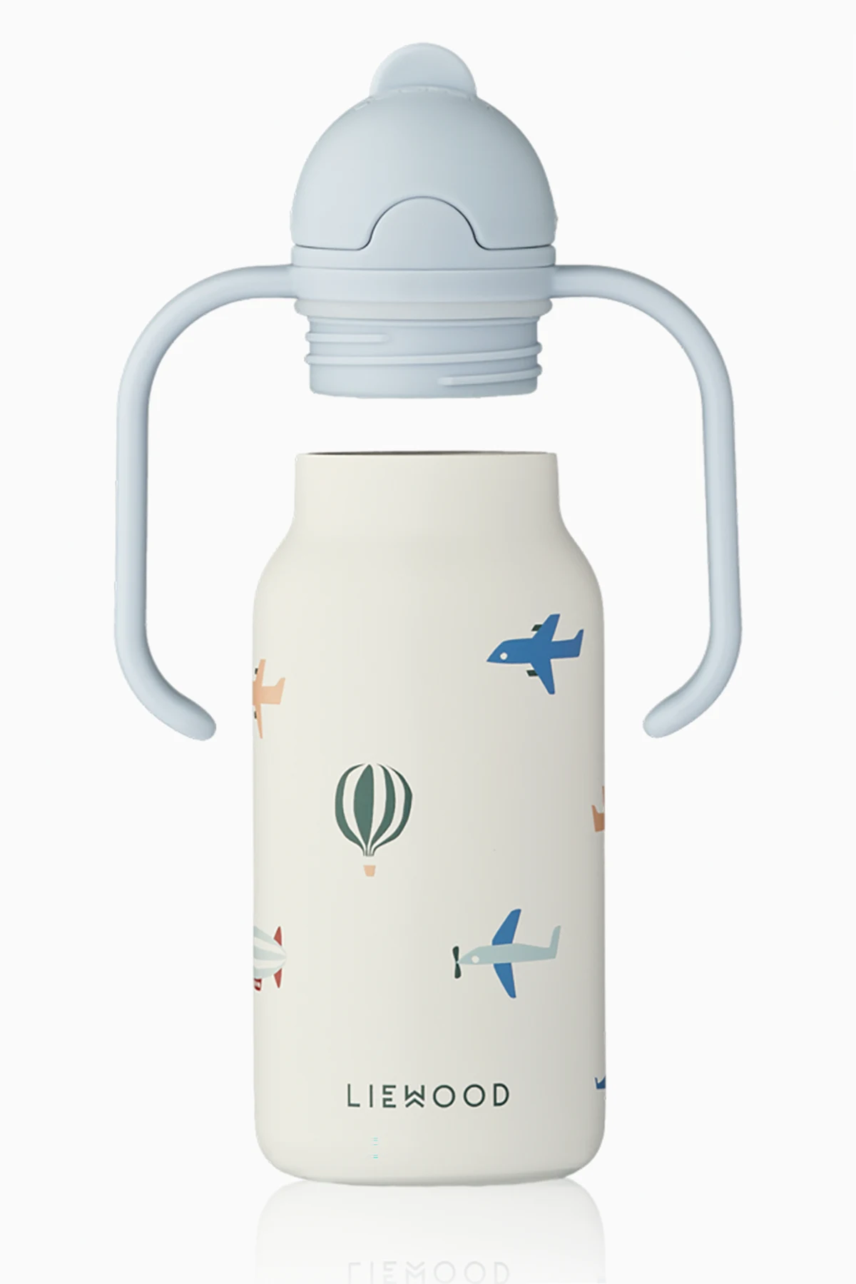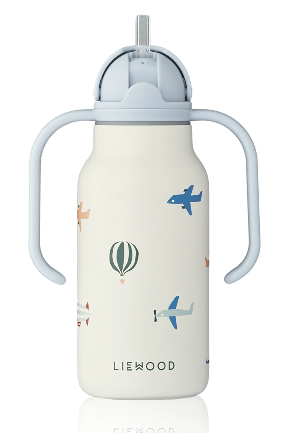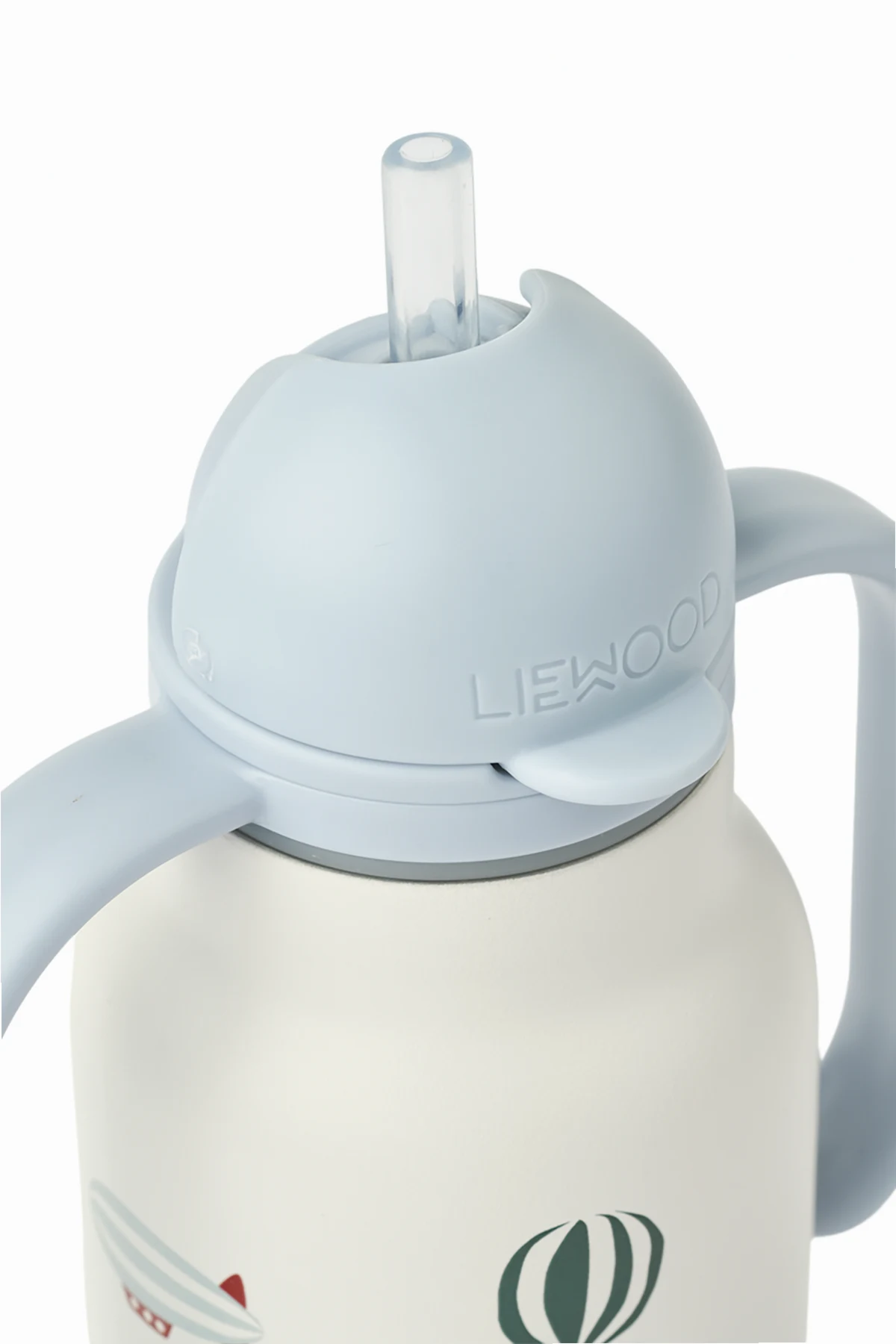 Der praktische Deckel in hellblauer Farbe verfügt über einen integrierten Trinkhalm, der sich leicht verschließen lässt und so Komfort und Sicherheit beim Gebrauch gewährleistet. Zwei sorgfältig gestaltete Griffe erleichtern kleinen Händen das Halten, und das Fassungsvermögen von 250 ml ist ideal für tägliche Abenteuer.
