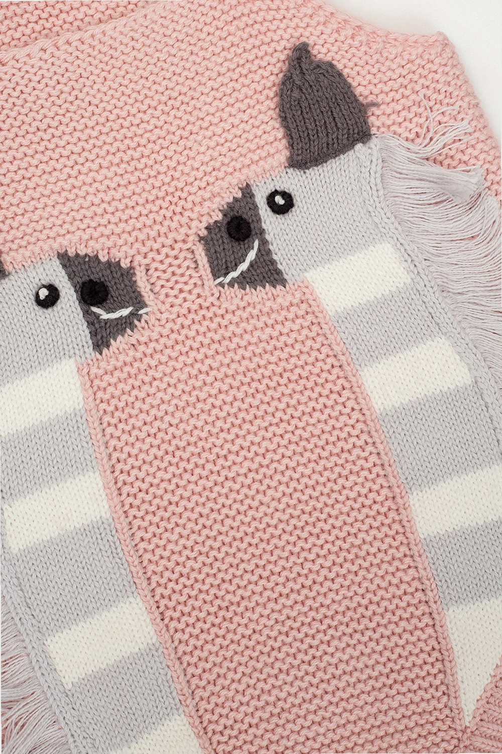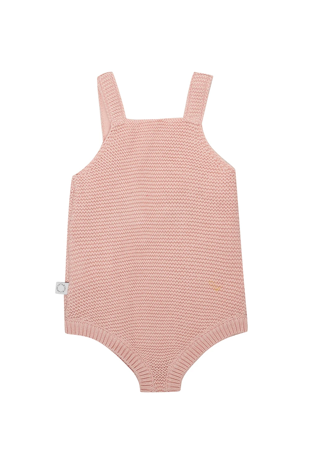 Pink bodysuit with straps from Stella McCartney Kids. Crafted from a wool and cotton blend, this style features snap closures on the crotch and grey, black and white graphic embroidery with an animal motif.