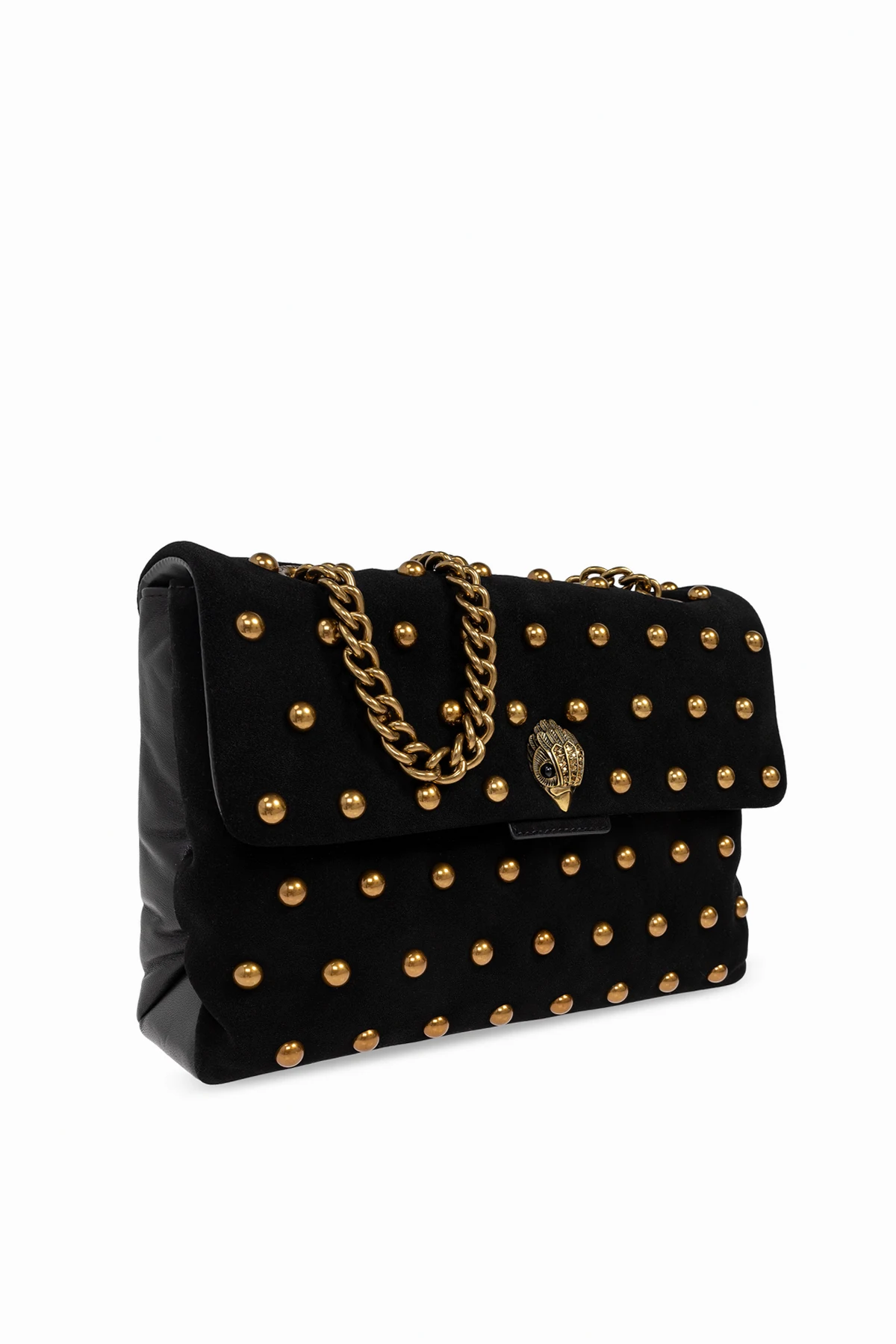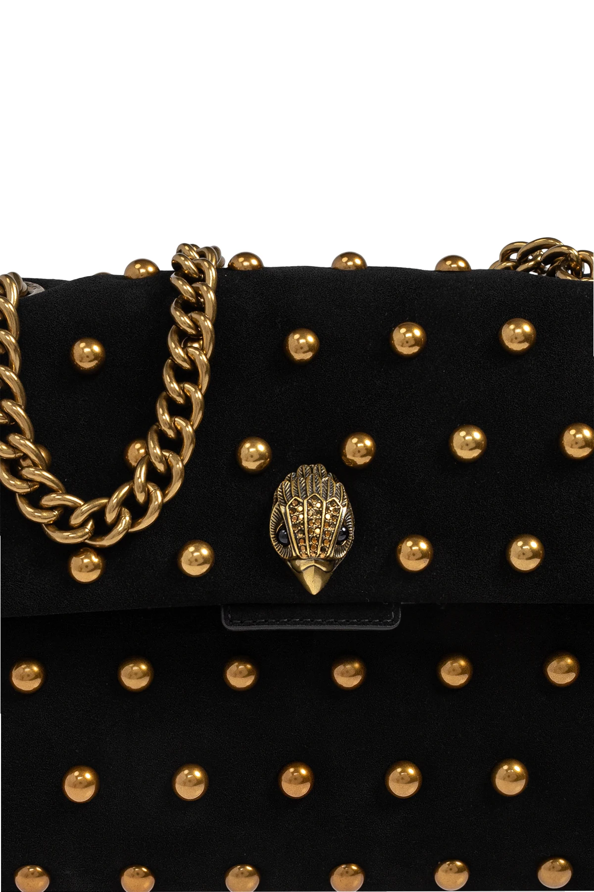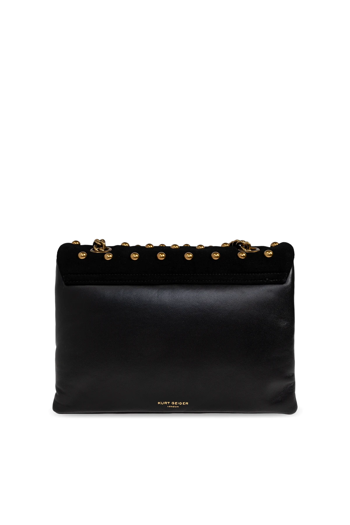 Kensington Large Umhängetasche von Kurt Geiger ist die Essenz des raffinierten Luxus , geschaffen für Frauen, die individuellen Stil und höchste Qualität schätzen. Die klassische, rechteckige Clutch-Form mit Klappe besteht aus edlem schwarzem Velours- oder Nubukleder auf der Front sowie glattem, genarbtem Leder auf der Rückseite und im Inneren der Tasche.