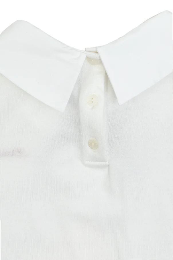 Im oberen Teil auf der linken Seite befindet sich das gestickte Designer-Logo in Rot, das einen dezenten, aber stilvollen Akzent setzt. Das Top wird auf der Rückseite mit Knöpfen geschlossen, was das An- und Ausziehen erleichtert.