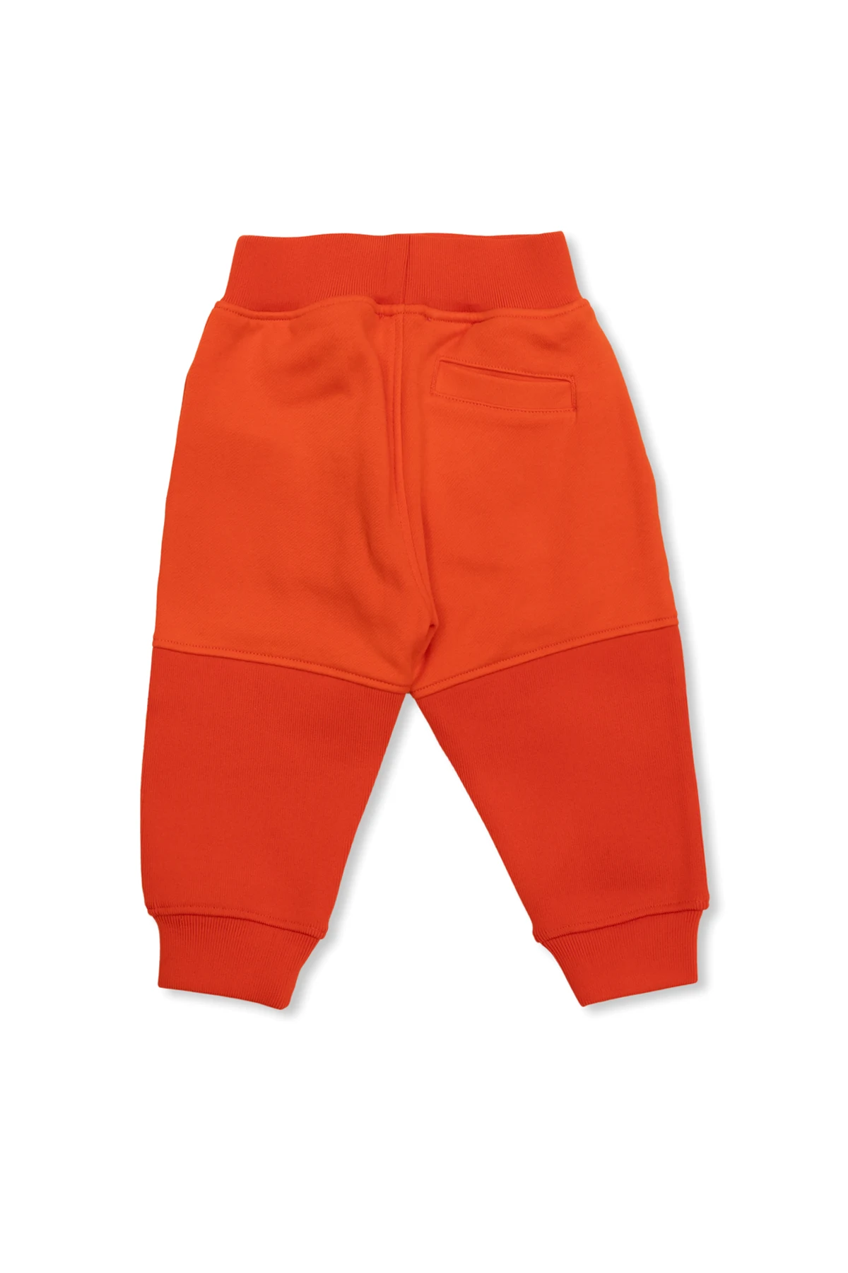 Orange ‘Gordon’ sweatpants from Burberry Kids. Crafted from organic cotton, this pair features an elasticated waistband and cuffs, four slip pockets and white logo embroidery on the front.