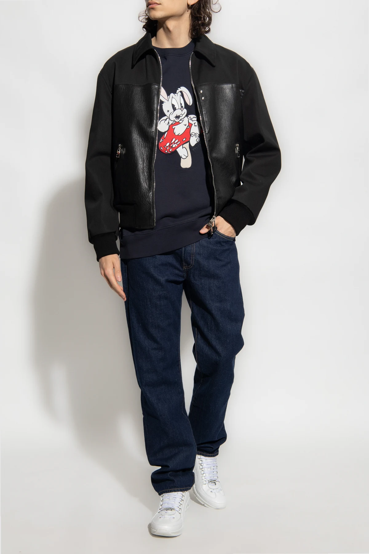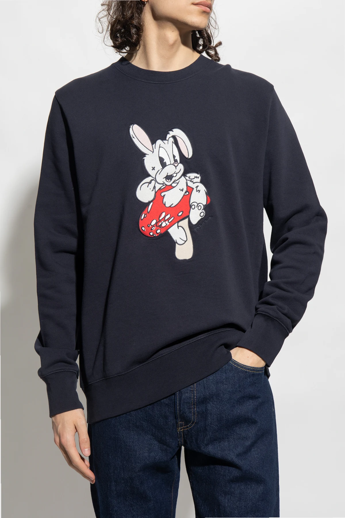 Navy crewneck sweatshirt from PS Paul Smith. Made of organic cotton, this long sleeve design features a rabbit motif, logo and ribbed trims at the crew neck, hem and cuffs.
