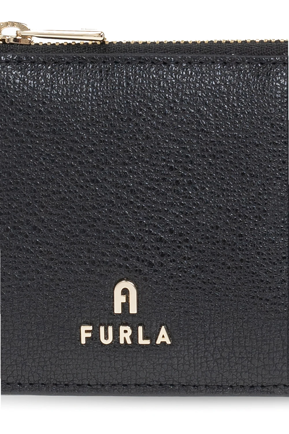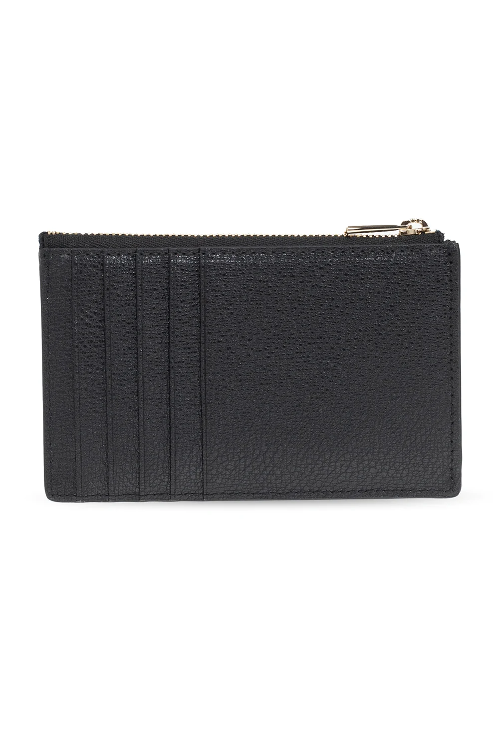 Black ‘Magnolia M’ card holder from Furla. This item features a gold-tone metal logo, zipped coin pocket and ten card slots.